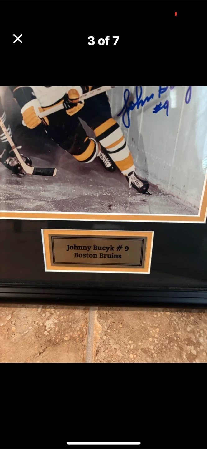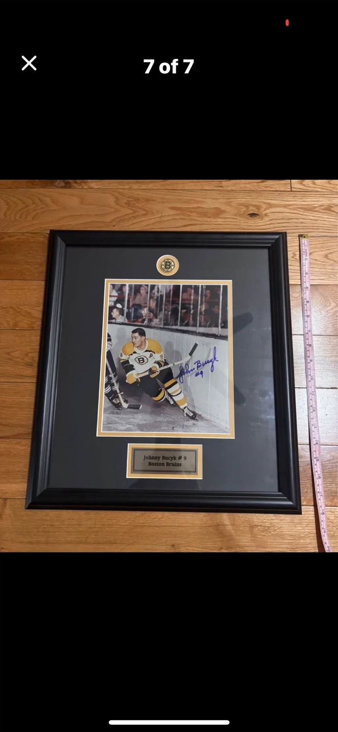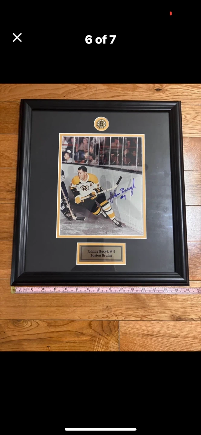 Vintage Boston Bruins-Johnny Bucyk Autographed Framed Photo..approx. 8x10..in excellent condition..total frame size shown in pics..