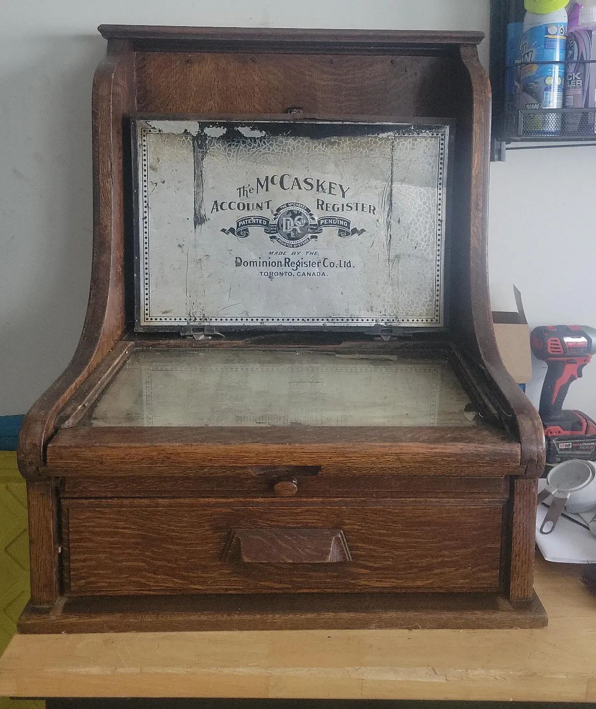 Antique McCaskey Account Register. Made by Dominion Register Co. Ltd. in Toronto, Canada. This is a vintage account register, likely used for bookkeeping or business records. It's a classic piece of office history!