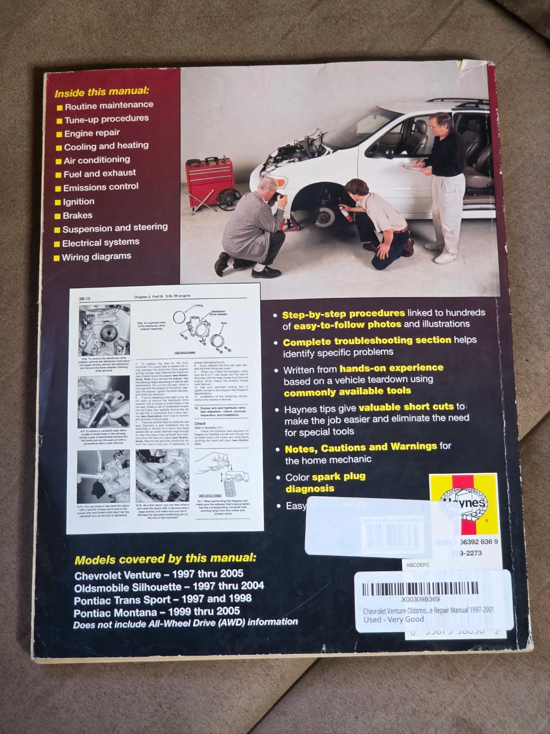 Haynes Repair Manual for GM Venture, Silhouette, Trans Sport