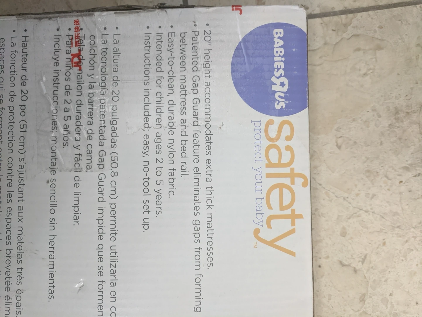 This bed rail is 20" high and accommodates extra thick mattresses. It's made with a patented Gap Guard feature to eliminate gaps and is intended for children ages 2 to 5 years. Easy-to-clean, durable nylon fabric. Instructions included, easy, no-tool set up. Pick up at 195 Merton Street Toronto or pick up at subway station Davisvill. And I can deliver it to your house but you need to pay me another $3. Thanks.