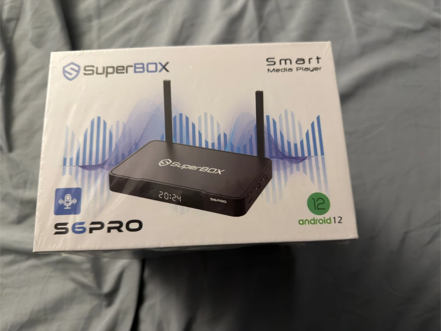 SuperBOX S6PRO Smart Media Player. Runs on Android 12. This media player connects to your TV for streaming content. Includes original packaging.fully loaded