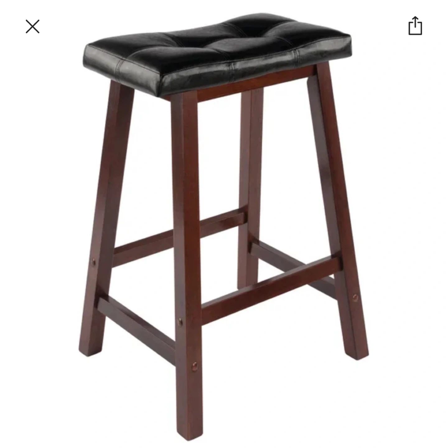 Selling a Gracie Oaks Landyon 5 Piece Dining Set. The set includes a square table with two shelves and four bar stools with black leather cushioned seats. The stools are approximately 25" tall and can support up to 220 lbs. The table and stools are made of wood with a dark brown finish, perfect for a small dining area or kitchen!
