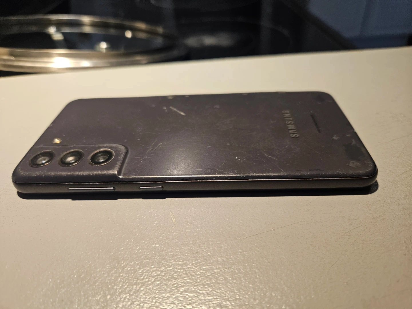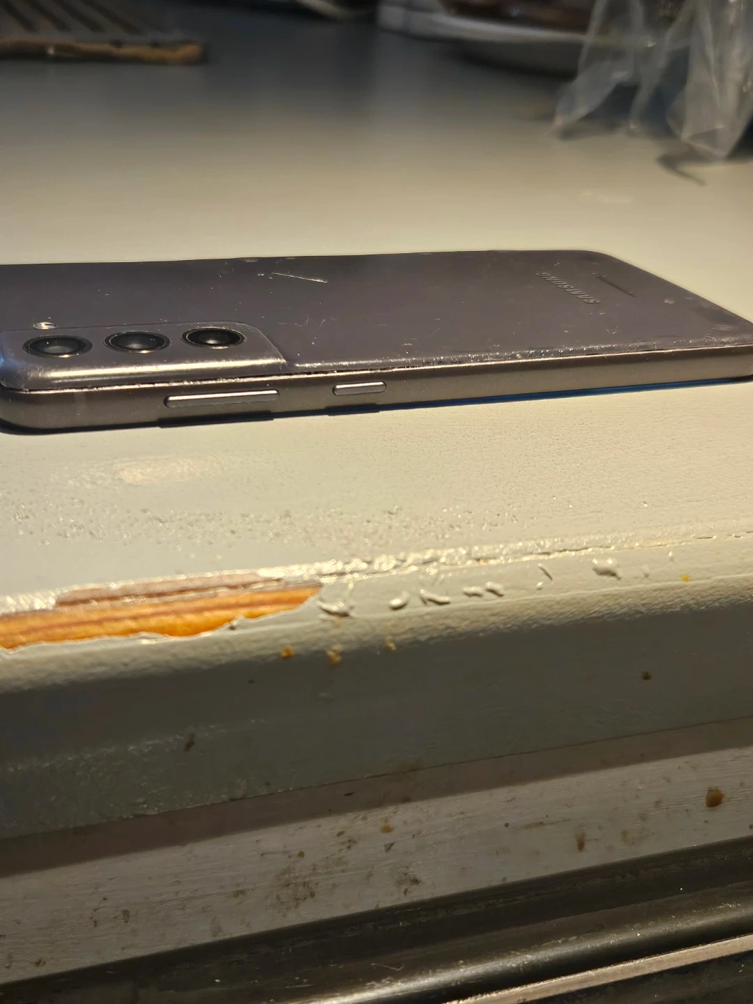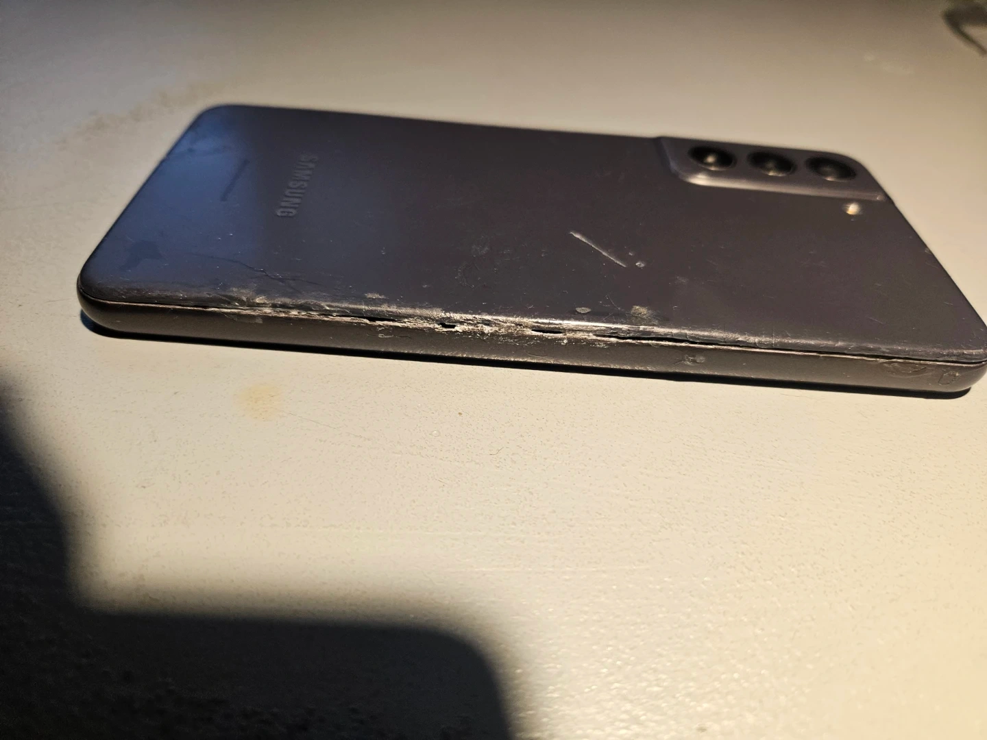Samsung S21 FE phone. Has a damaged back someone glued it down with crazy glue,