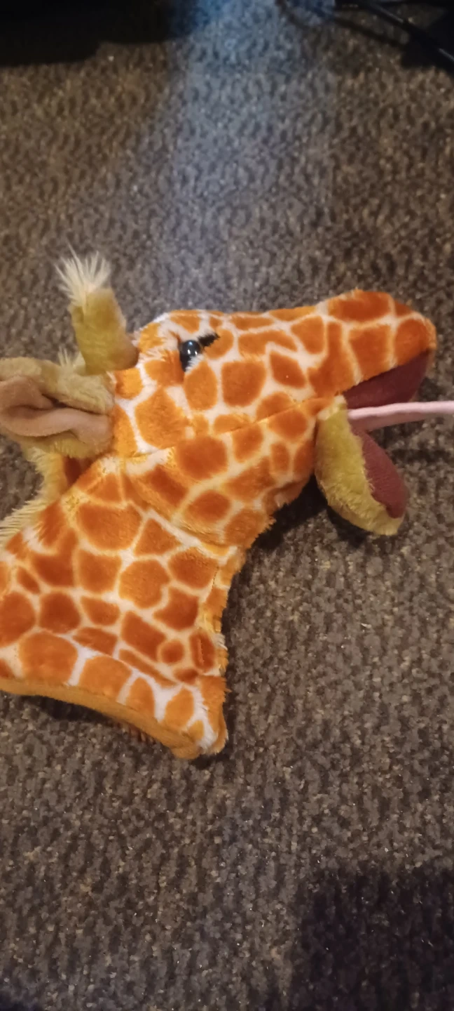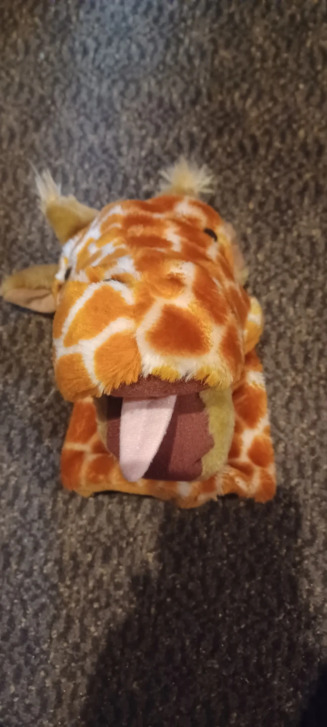 This is a used Animal Planet Giraffe Puppet, ready for imaginative play! This plush puppet features a friendly giraffe face with a soft, huggable design, perfect for storytelling and puppet shows.