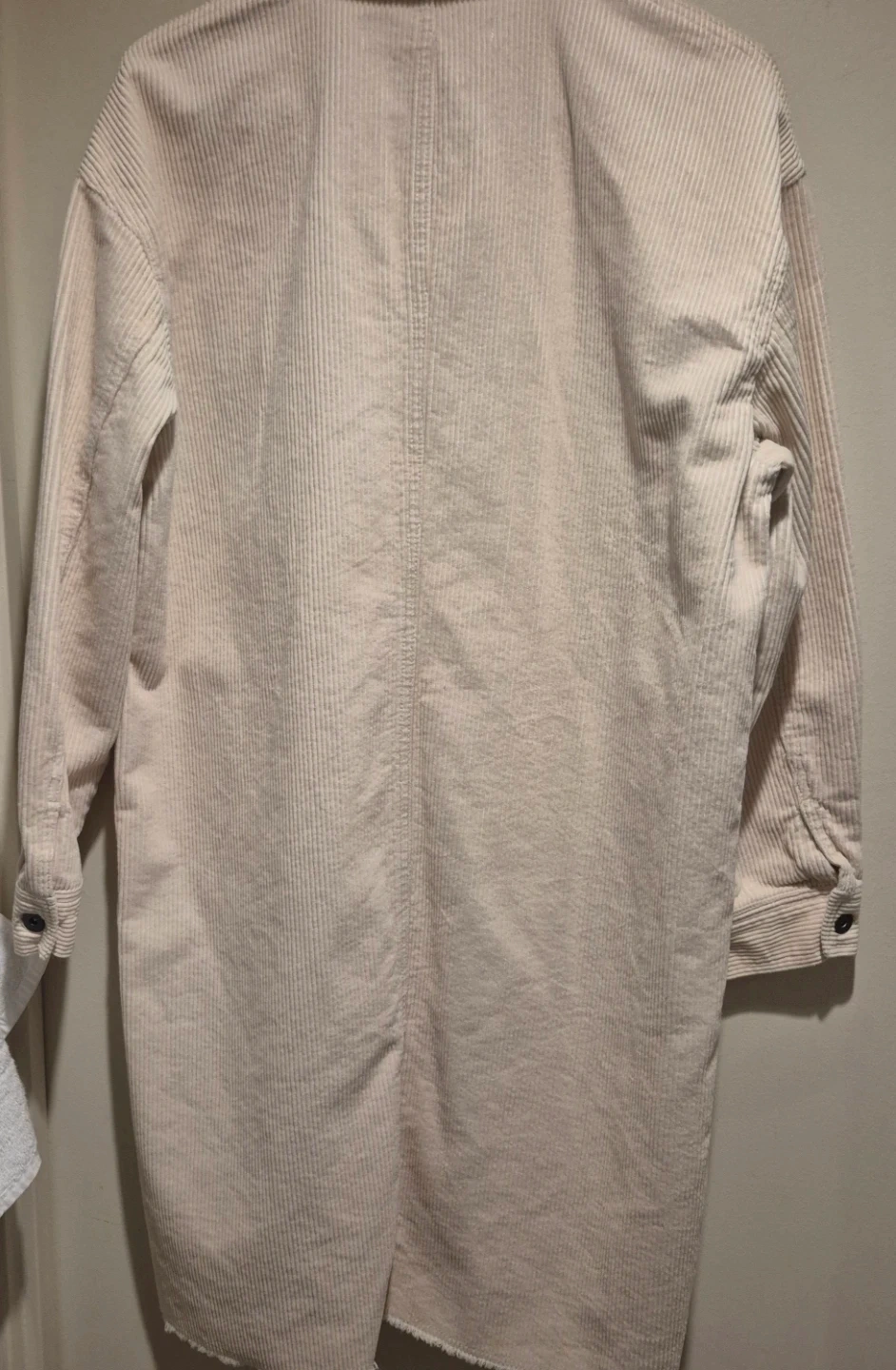 Cream coloured ZARA corduroy long shirt dress. It's a size medium with button-up front and two chest pockets. Made of 100% cotton. Can be used as a shacket or button up dress , never been worn , oversized.