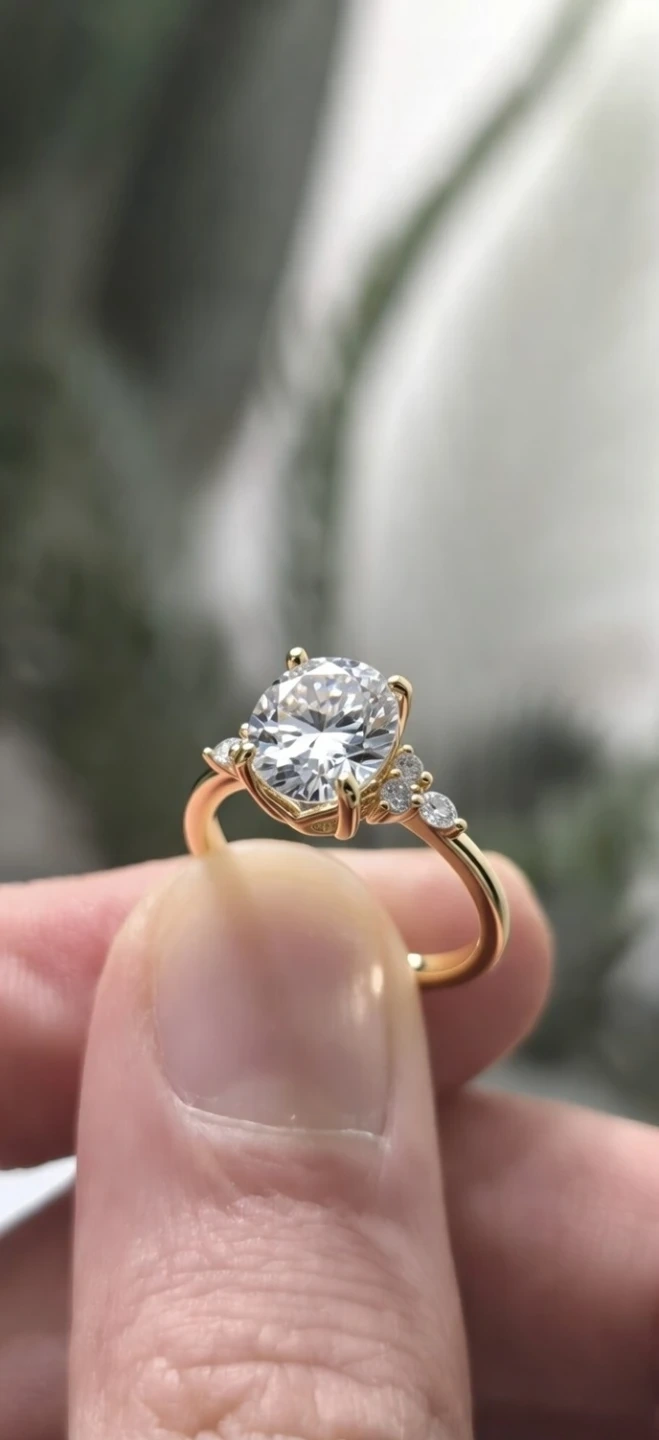 3 CARAT LAB GROWN OVAL STONES ON 925 GOLDPLATED SIZE 7 SPARKLING RING