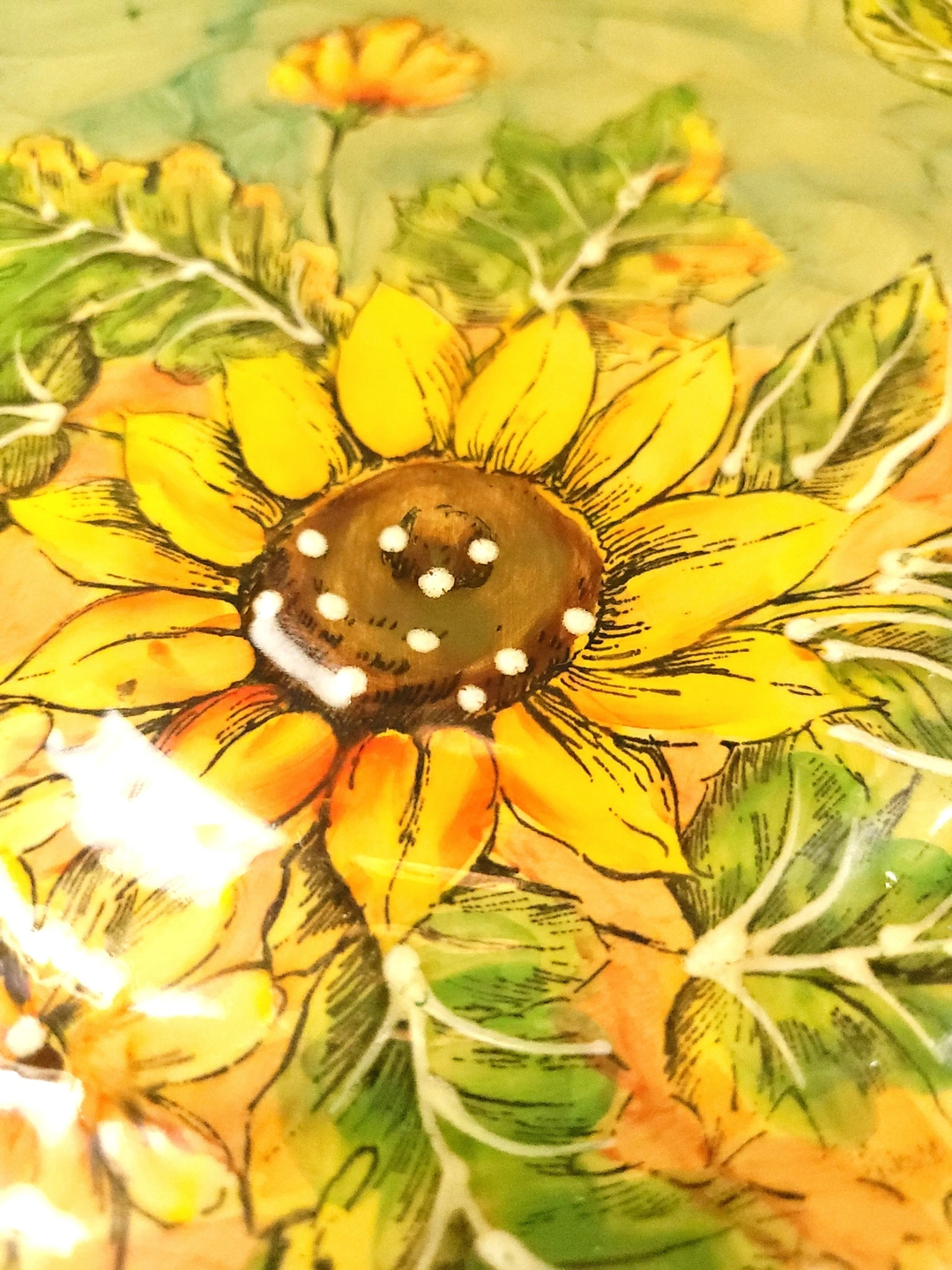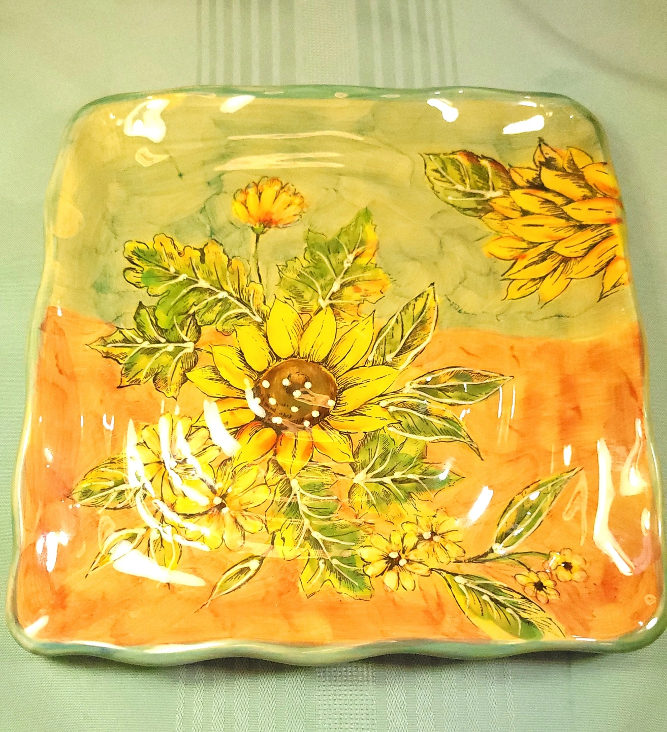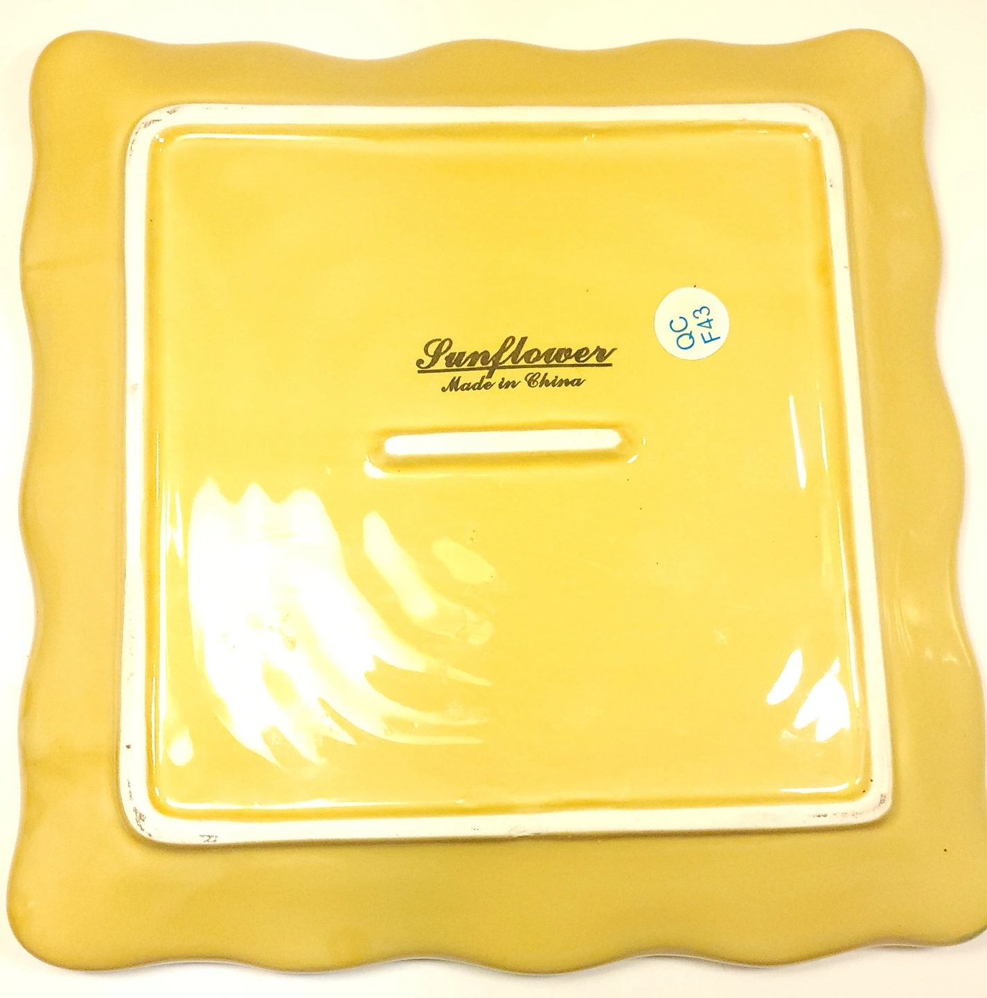 Hand Painted Sunflower Ceramic Square Plate, Circa 2001