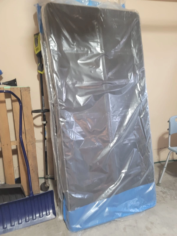 Selling a king size mattress box spring, model SR 6LKB. It's still in its original packaging and ready for a new home! Perfect for upgrading your bedroom or furnishing a new place