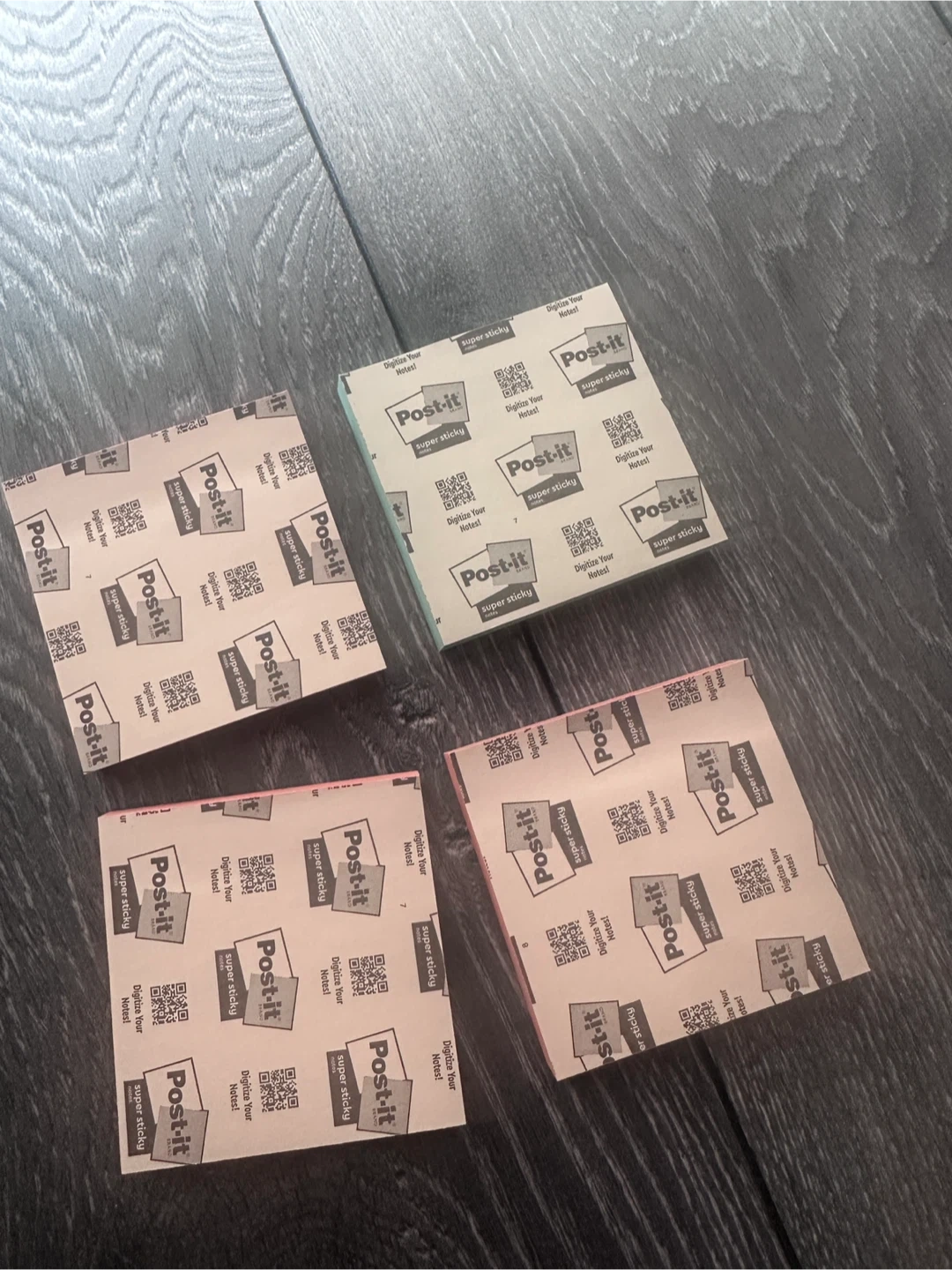 All for $2! Four packs of Post-it Super Sticky Notes. Includes one pack of light blue notes and three pack of peach notes. They're great for reminders and organizing tasks! Pickup at 403 Church St, cash ONLY.