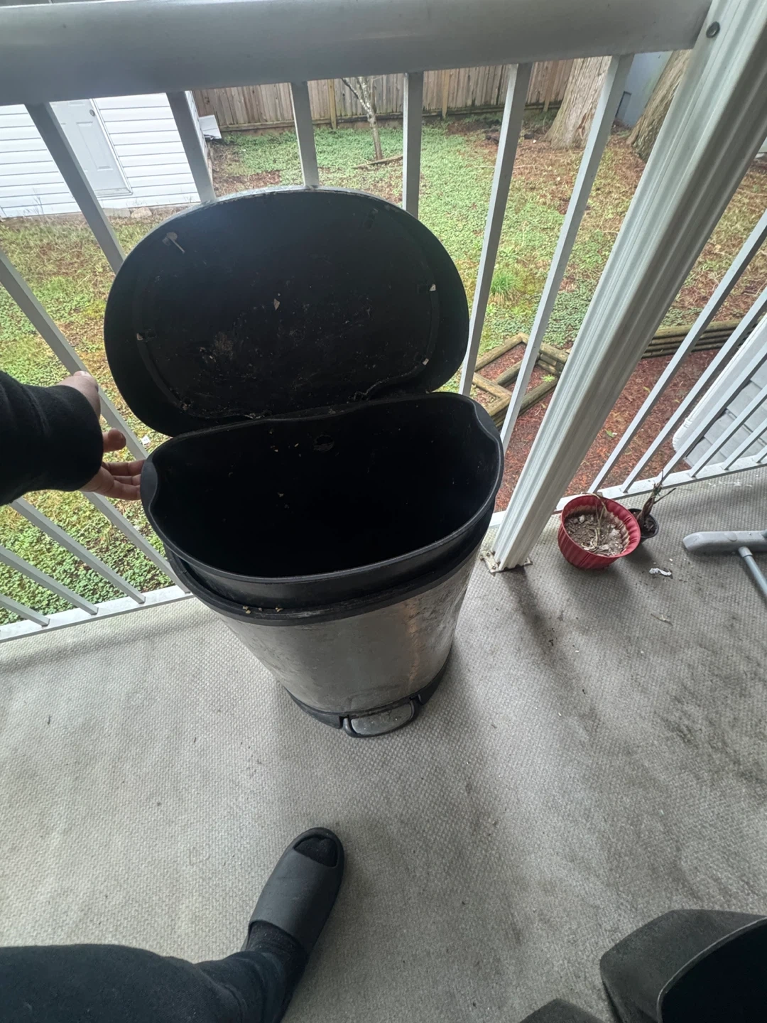 Two black plastic waste bins with a silver trim around the top. They're perfect for organizing small spaces. Dimensions are approximately 12" tall and 10" wide.