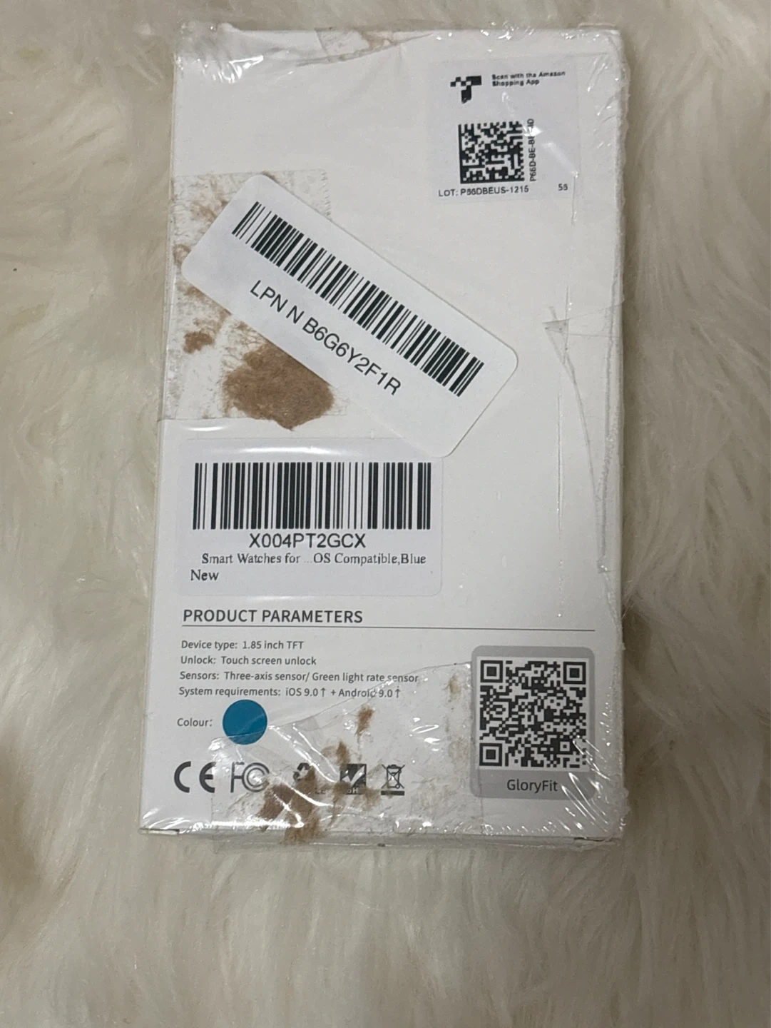 This is a new smart watch fitness tracker. It has a 1.85-inch TFT display and is compatible with iOS and Android systems. This device is blue and features a three-axis sensor and green light heart rate sensor.