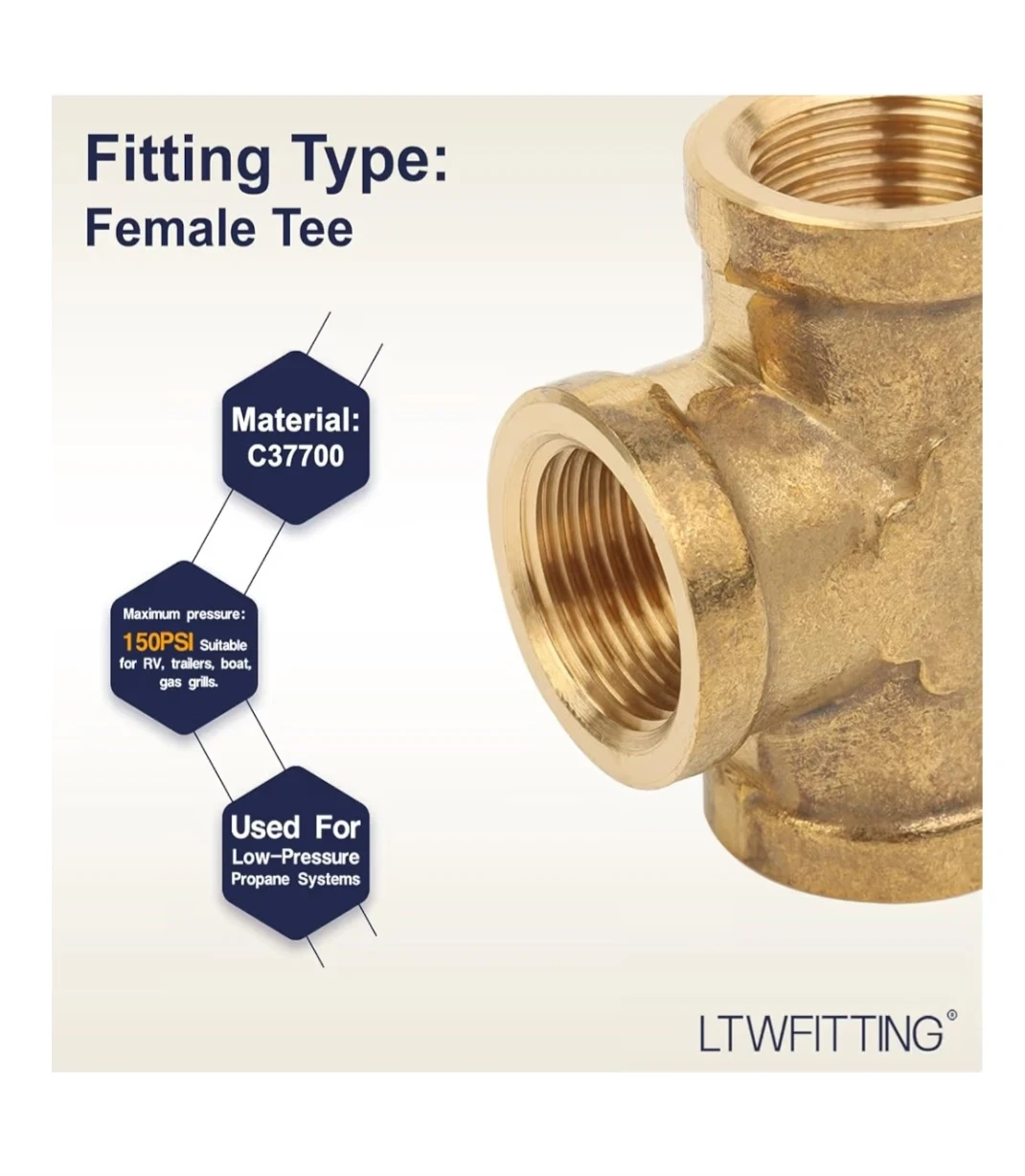 LTWFITTING Brass Pipe Fitting 3/8" Female(Pack of 5)