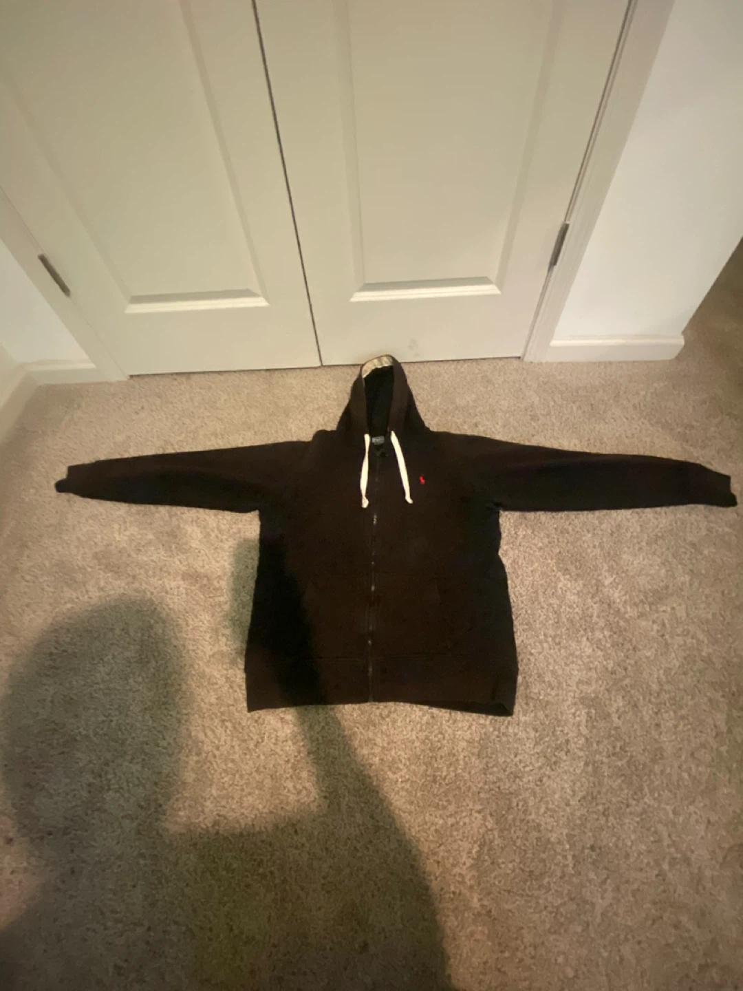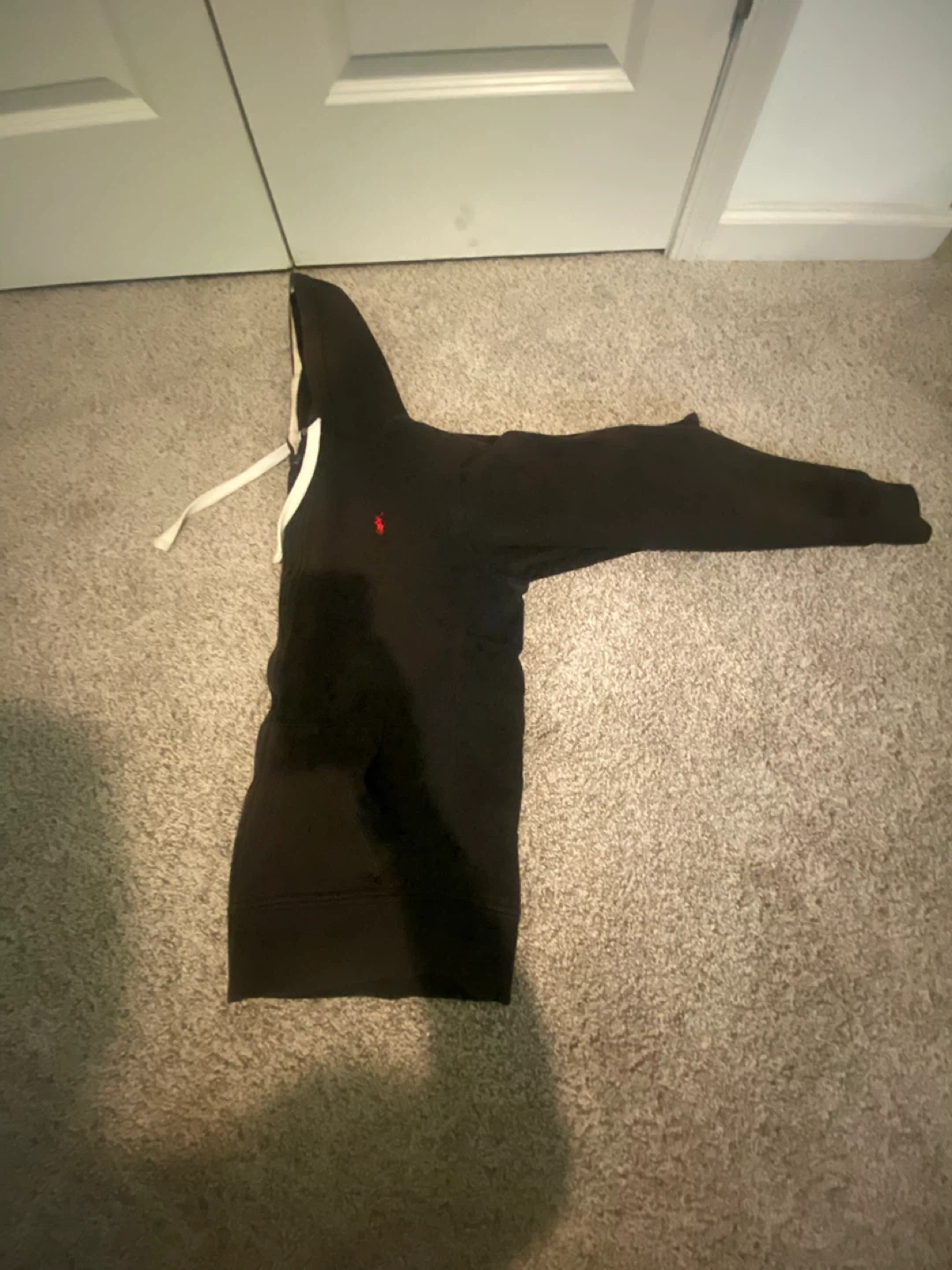 Here's a classic black Polo Ralph Lauren hoodie! It features the iconic Polo logo. Perfect for everyday wear and layering