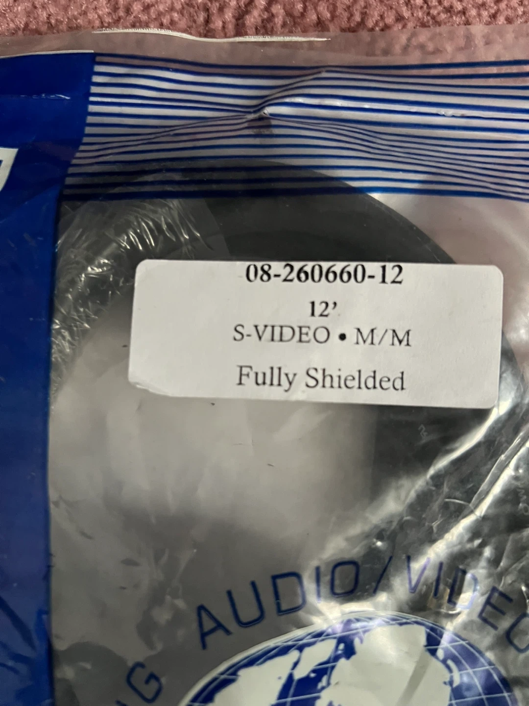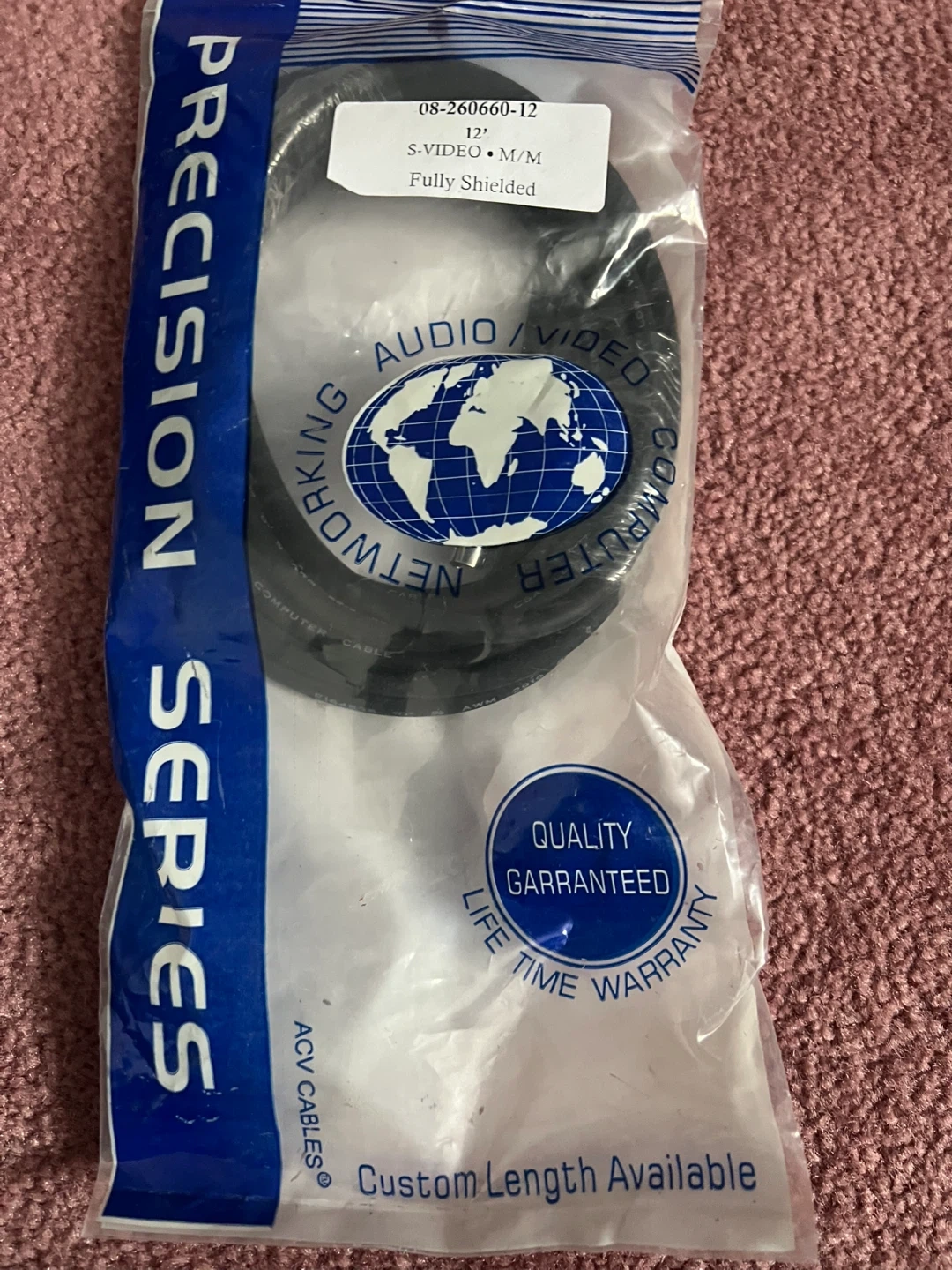 This is a 12-foot S-Video cable with M/M connectors. It's fully shielded for quality signal transmission. ACV Cables offers custom length options.