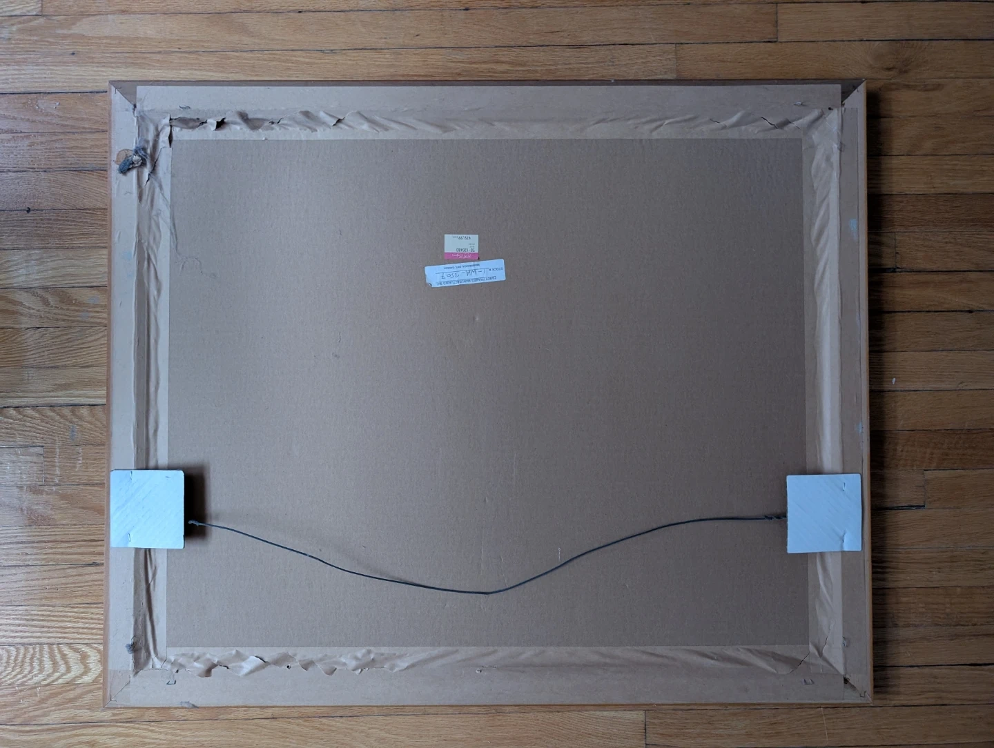 33.25 x 27.25 inches. Hangs via a metal wire on the back.