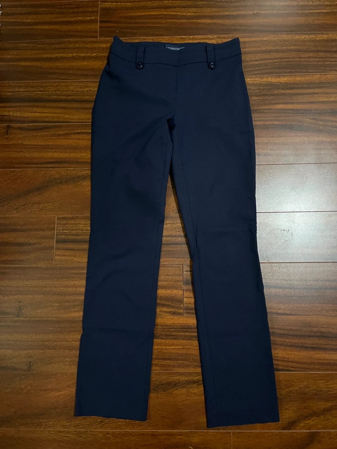 Reitmans ‘The Original Comfort’ pants for women, size 7, navy blue. Straight leg cut. Great condition. Soft, stretchy rayon‑blend fabric with a comfortable mid‑rise.