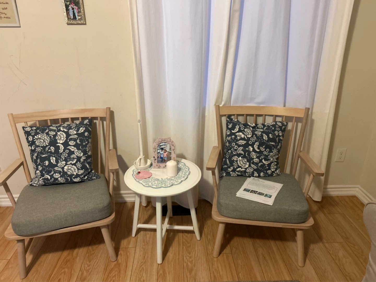 IKEA - Wooden accent chairs with decorative pillows