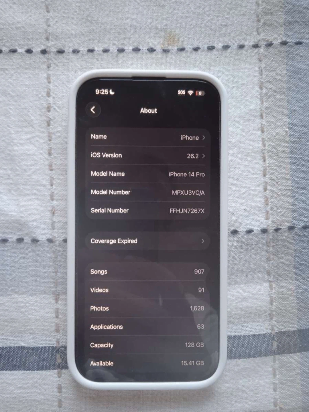 iPhone 14 Pro with 128 GB storage. The display flickers at the bottom, everything else is in working condition. For repair