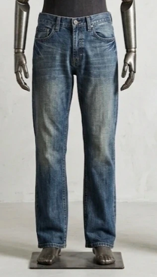 This is a Flypaper branded, 100% cotton jeans. Light navy blue. Two front pockets and two back button pockets.