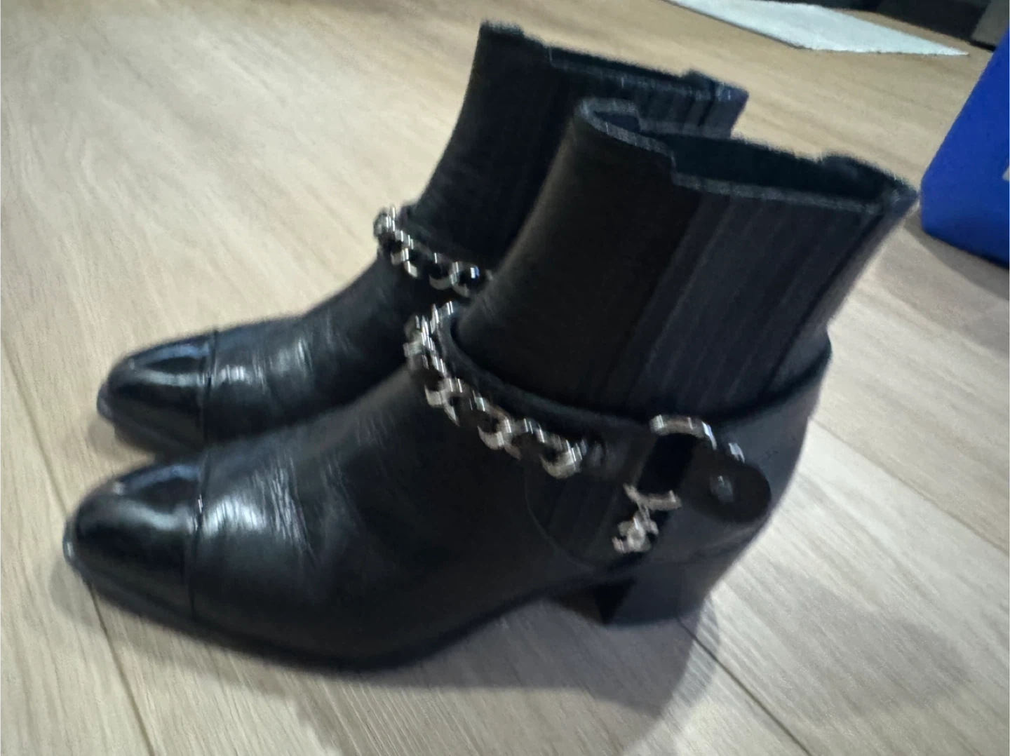 Chanel Black Leather Ankle Boots with Chain Detail