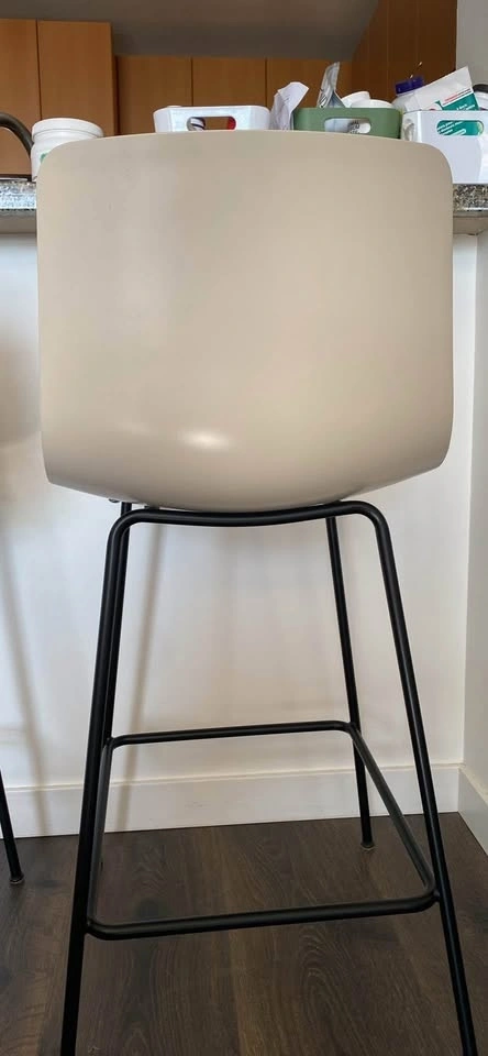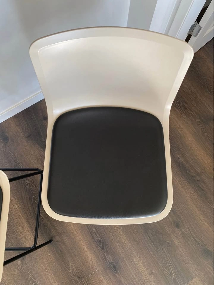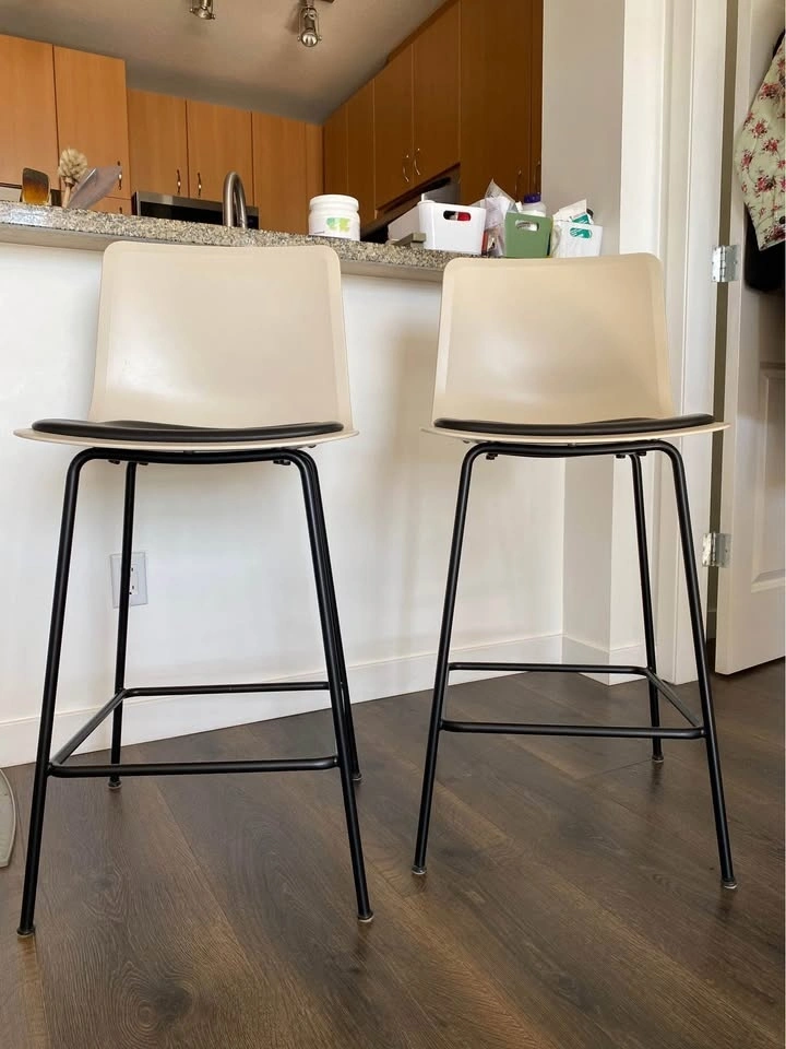 Selling a pair of 2 Fredericia Pato 4 Leg Counter/Bar Stools. Counter Height. Seat Upholstery: Premium Black Leather. Shell Finish: Sand FF. Frame Finish: Black. Glides with felt. Minor flaw on one seat, shown in photos (5th photo near back). Otherwise excellent condition. Pick up in North Van only.
