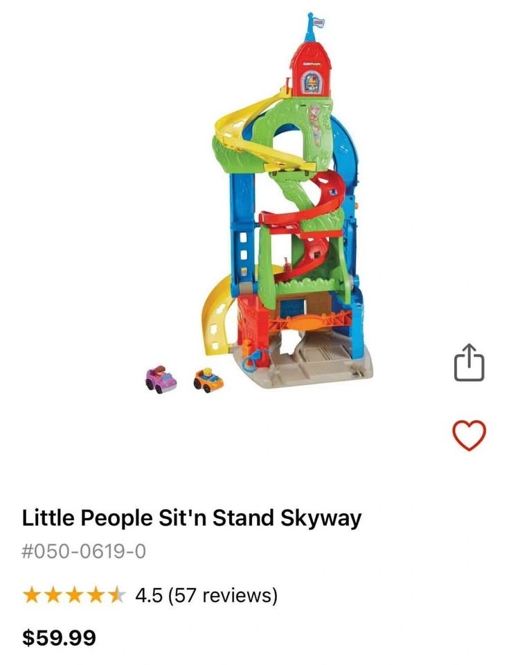 The Fisher-Price Little People Sit 'n Stand Skyway toy has a 2-in-1 design, transforming from a roadway to a spiral ramp for hours of fun and imaginative play. It's great for promoting learning through play. Pick up in Aurora.