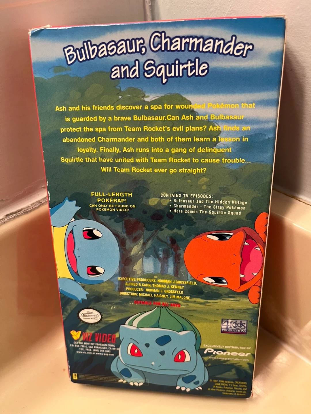 VHS tape containing 3 episodes of the Pokemon anime