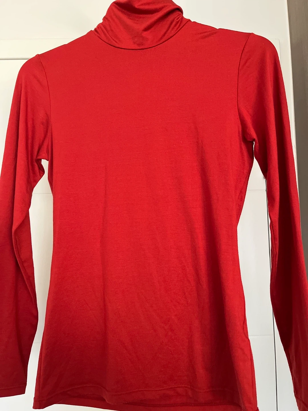 A vibrant red turtleneck top from HEATTECH! Perfect for layering during the colder months. It's in great condition and ready for a new wardrobe