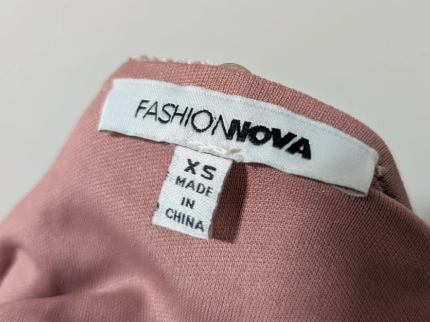 This is a Fashion Nova velvet bodysuit in a dusty rose colour. It's a size extra small. Made from a soft velvet material.