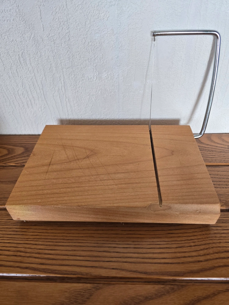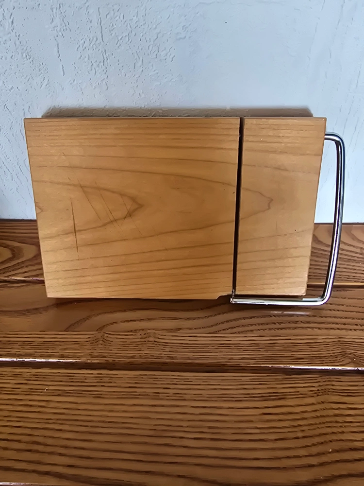 Wooden cheese slicer. Features a wire for slicing. Made in Canada. Number 99.