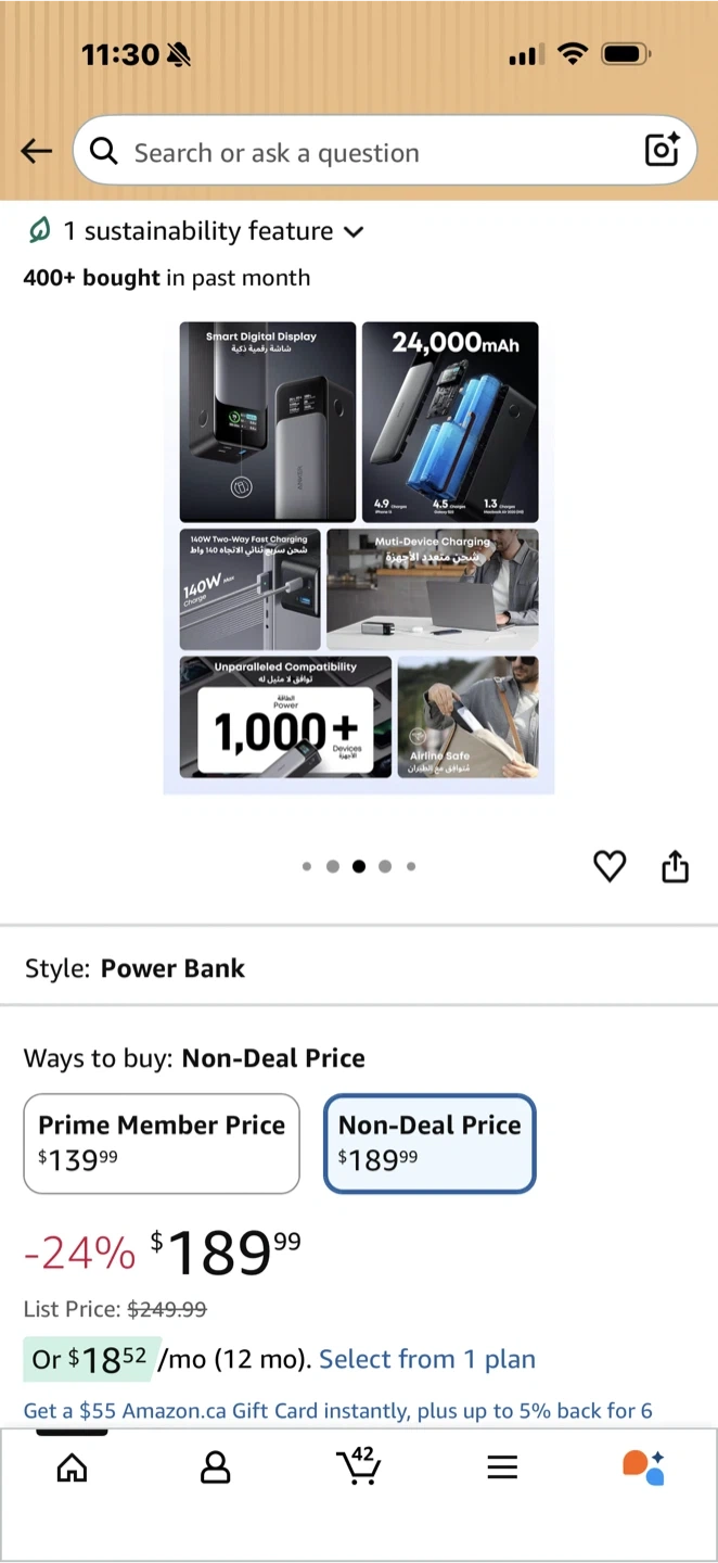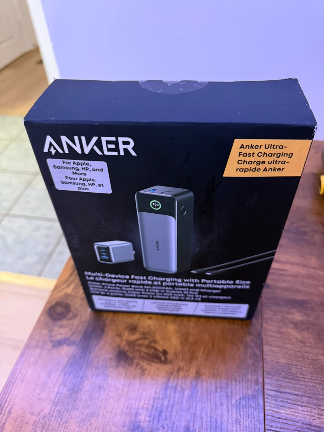 This is the Anker 737 Power Bank with a 24,000mAh capacity. It supports 140W fast charging and has a smart display. It's compatible with a wide range of devices including Apple, Samsung, HP, and more.