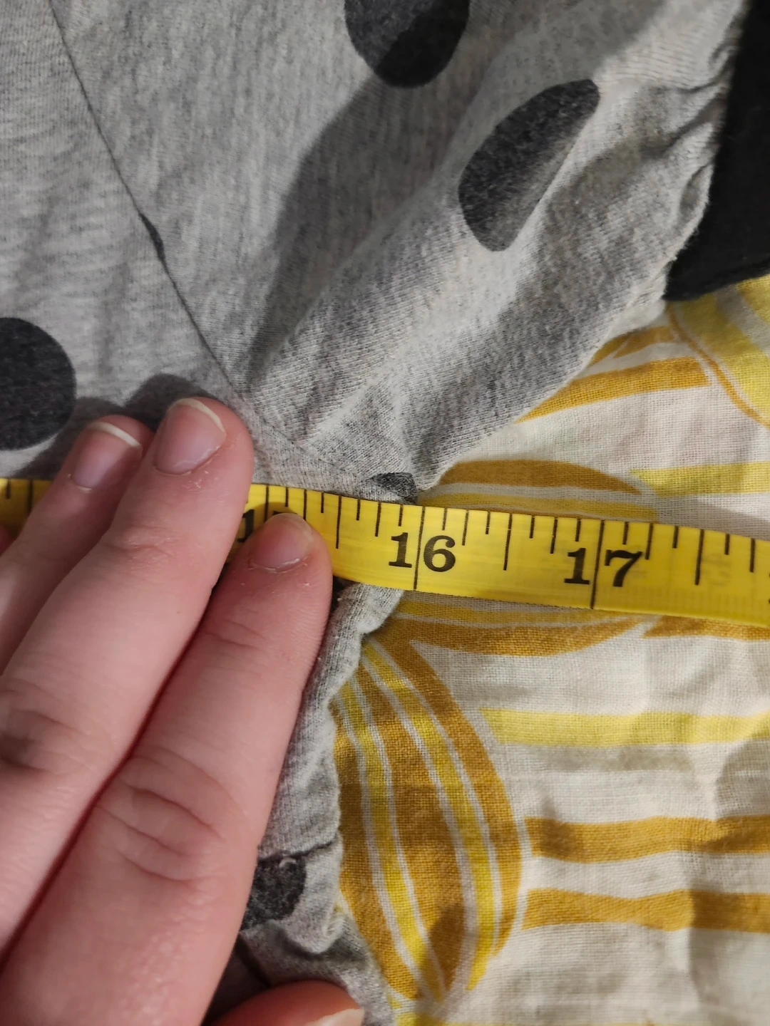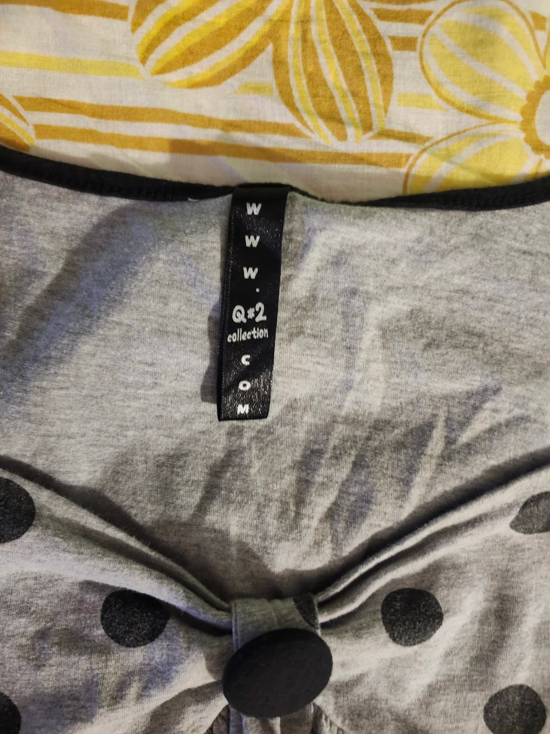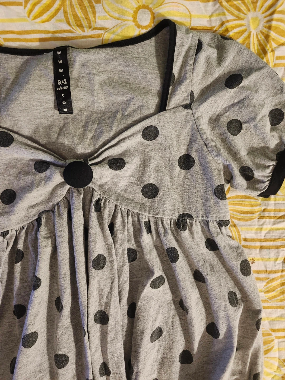 Grey and black polka dot babydoll top with button
