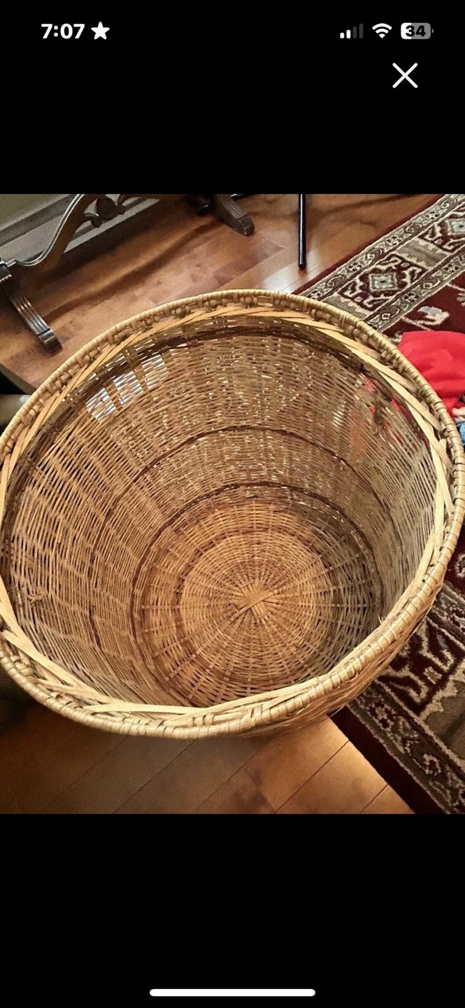 - has 2 wicker handles, no lid.