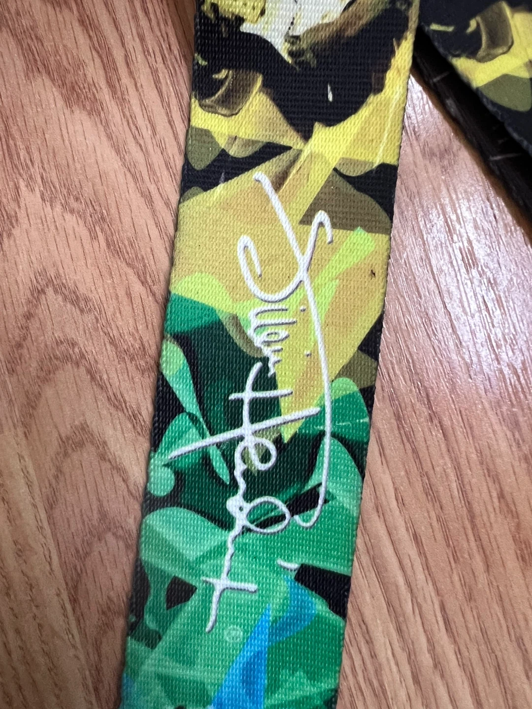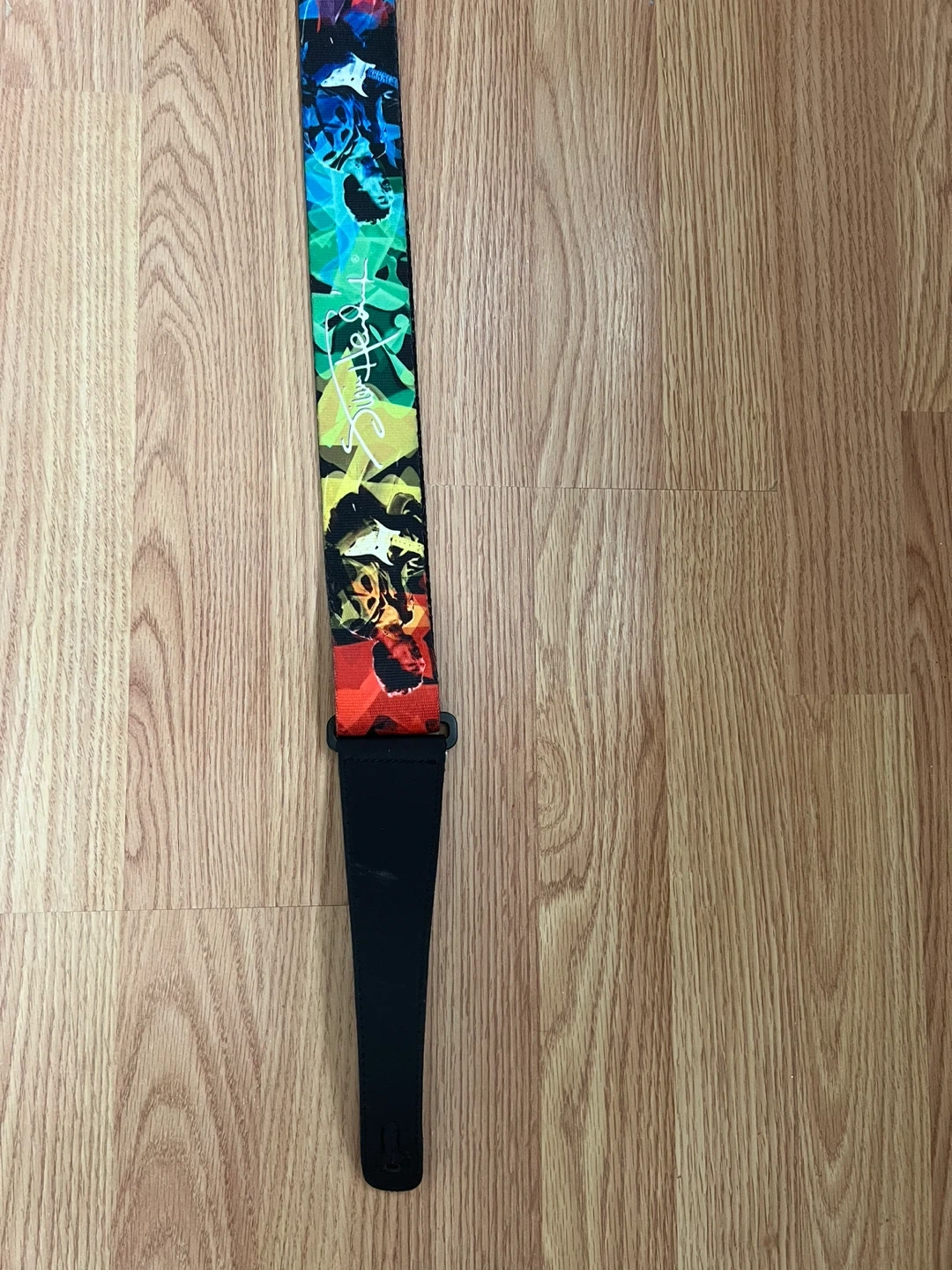 Here's a Levy's guitar strap featuring a cool Hendrix design! It's in great shape and ready to rock. Perfect for any guitar enthusiast looking to add some style to their instrument