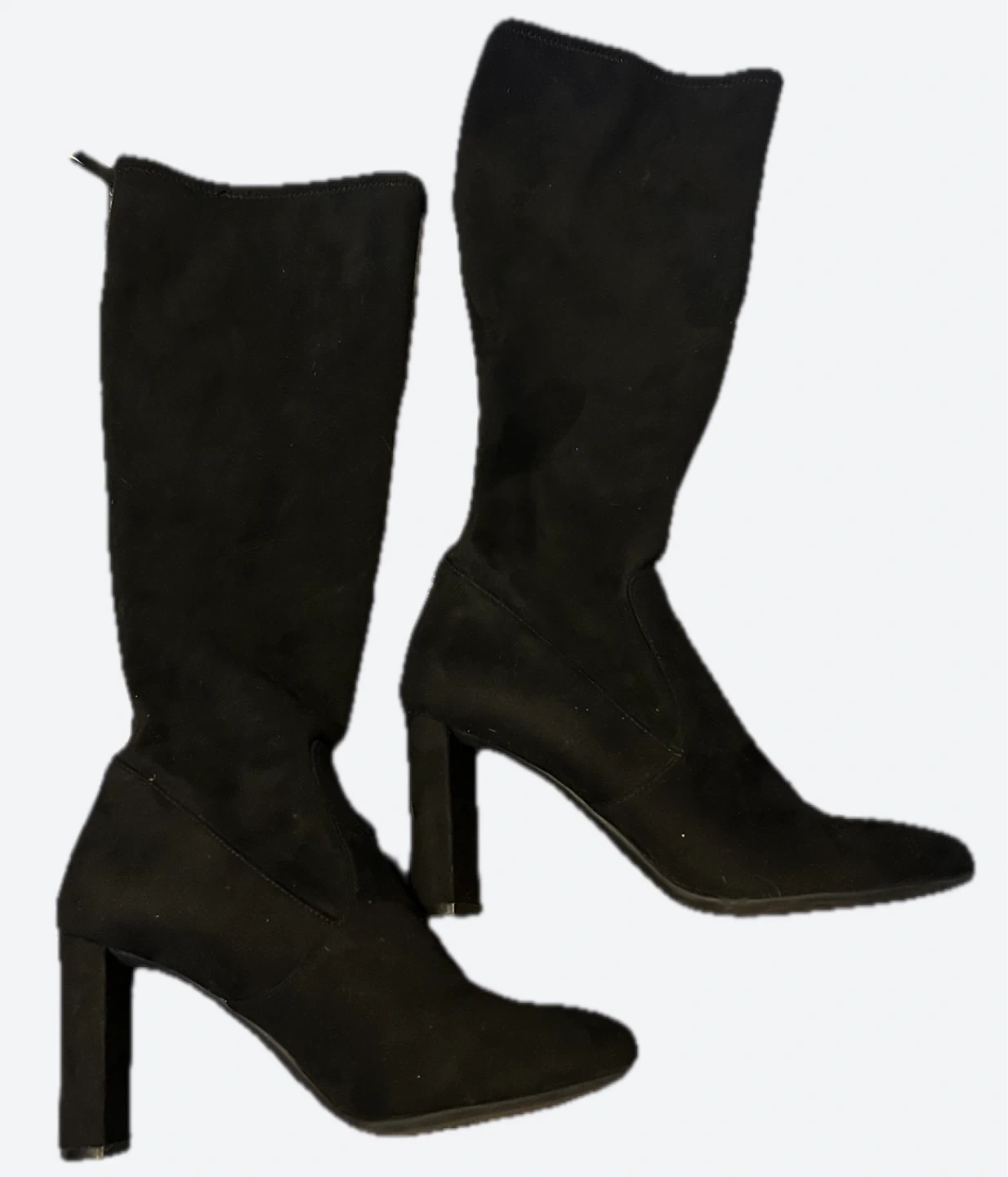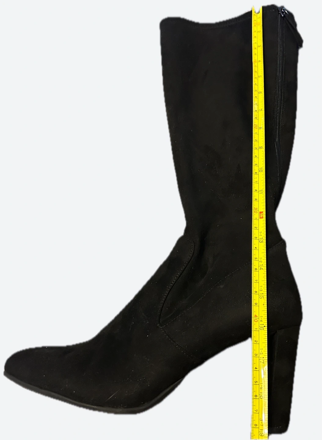 Selling a pair of gently used Nine West knee-high suede boots in black. They have a sleek, stylish look with a comfortable heel. Perfect for dressing up or down! Size 9