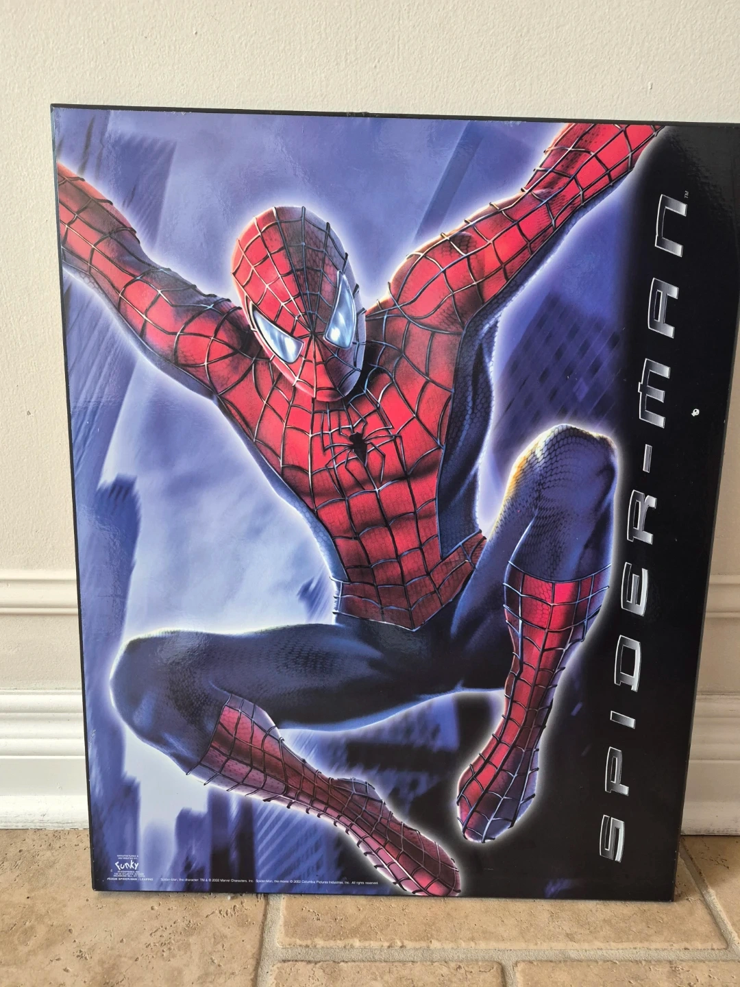 This is a 2002 Spider-Man movie poster. It features the iconic superhero in action. Copyright 2002 Columbia Pictures Industries, Inc.