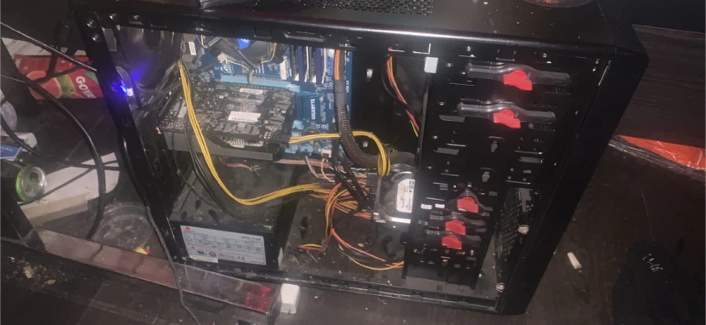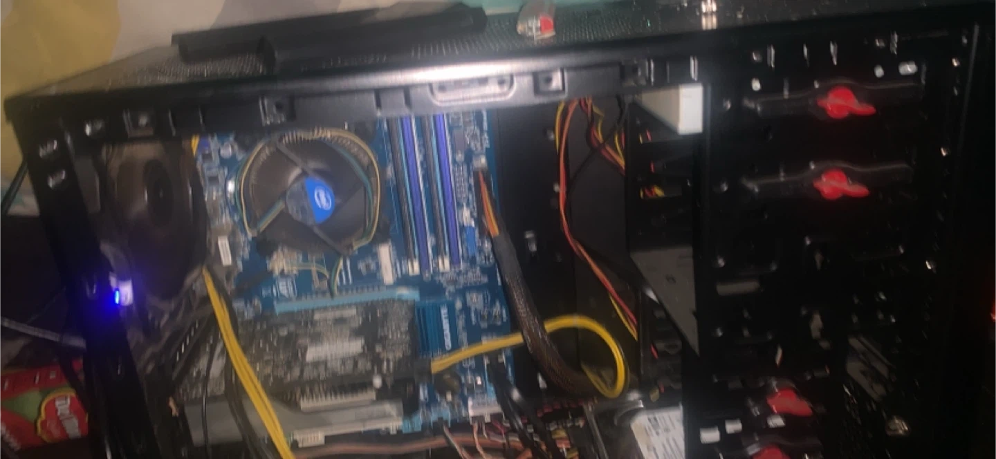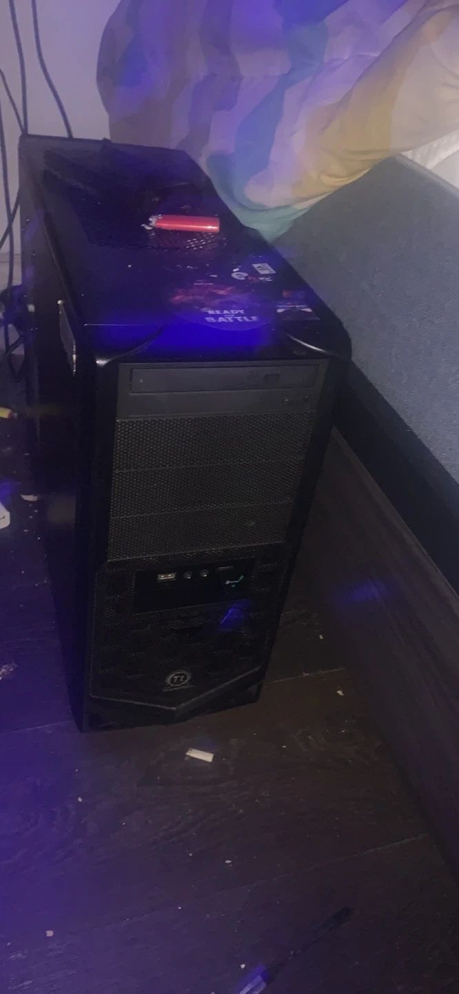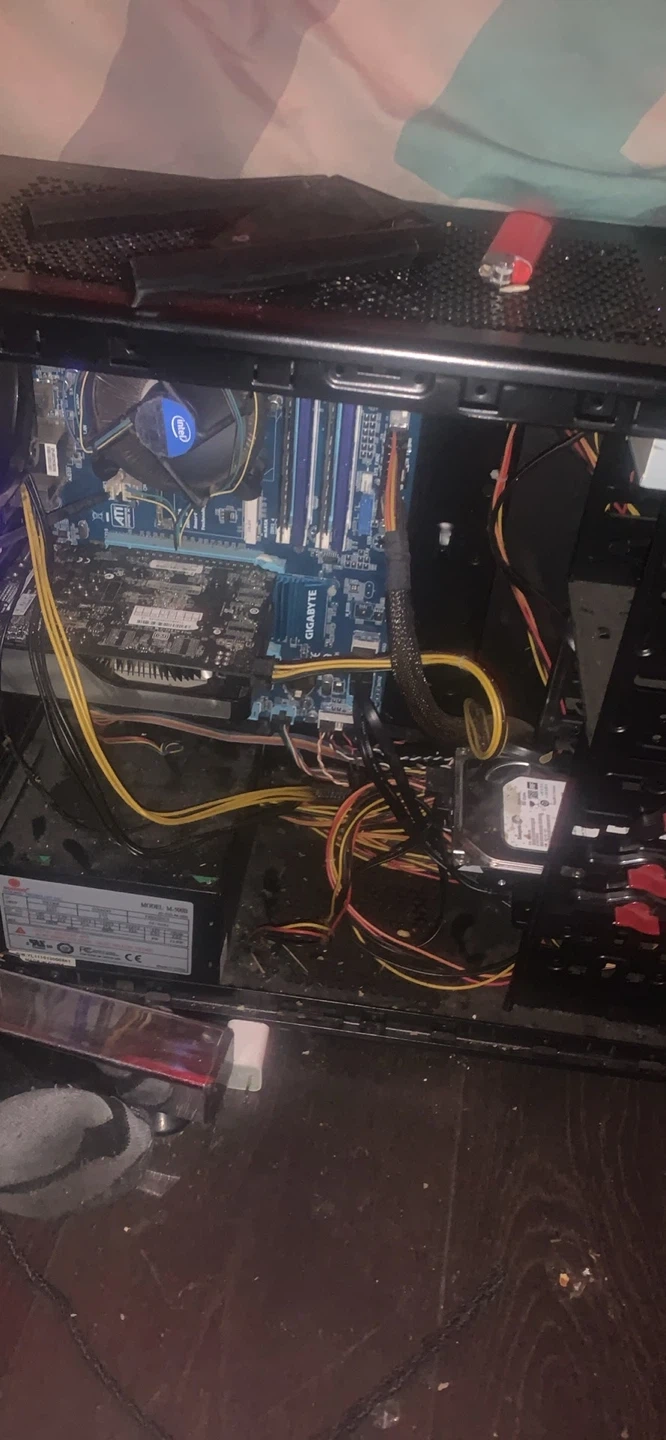This is a black tower computer case. It's ready for your components. Inside, you'll find a motherboard and power supply already installed. This case offers plenty of space for expansion.