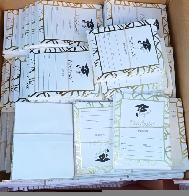 NEW Celebrate! Please Join Graduation Blank Black & Gold Invitations with Envelopes. $1 for Set of 10, $2 for Set of 30, $5 for Set of 100, $30 for a full box. Located in Summerside, SE London. Message to arrange PICK UP ONLY. Smoke Free HOME.