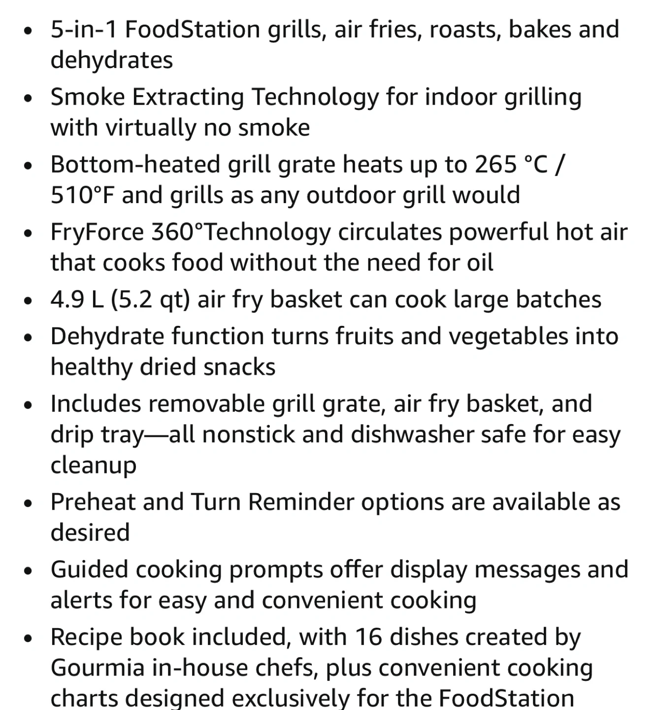 Gourmia FoodStation 5-in-1 Smokeless Grill & Air Fryer