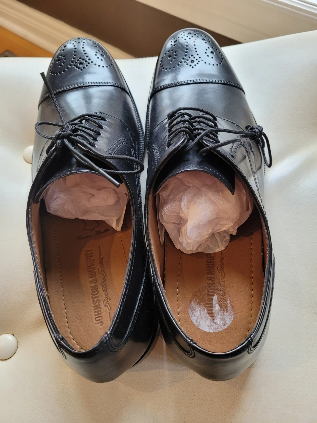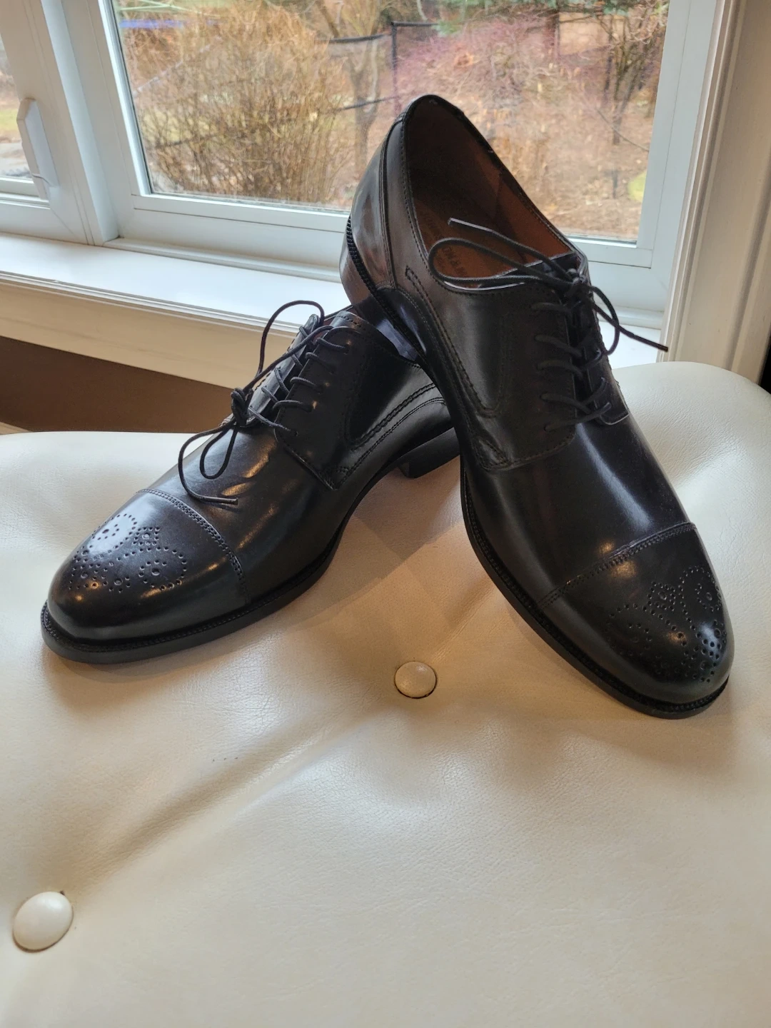 Classic black cap toe Oxford dress shoes from Johnston & Murphy.
