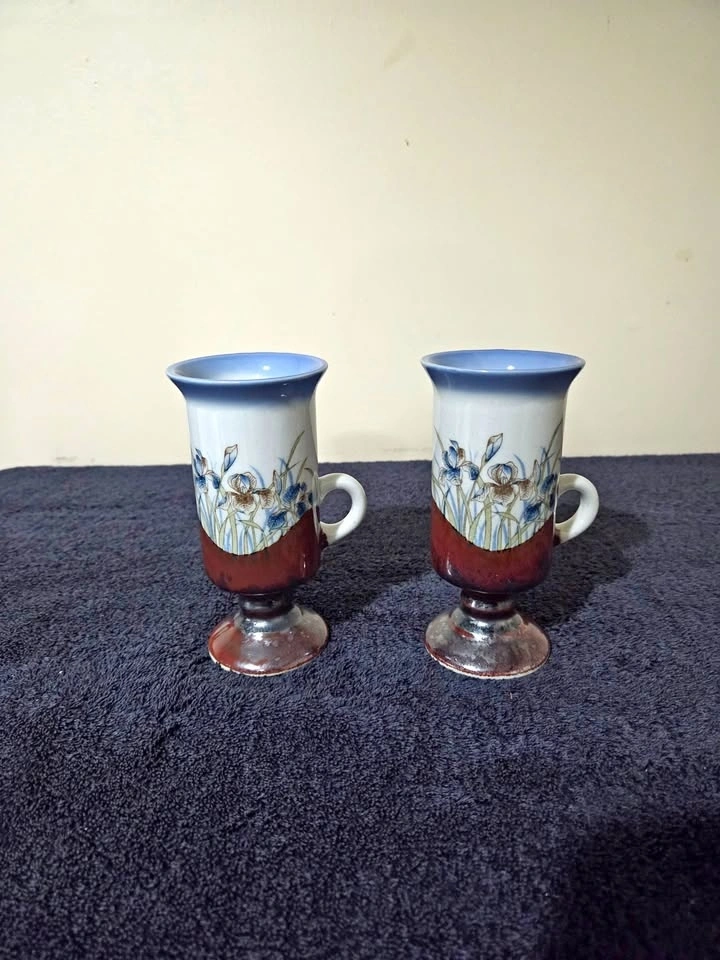 2 Vintage Otagiri Japan Ceramic Coffee Mugs with a handcrafted floral design.