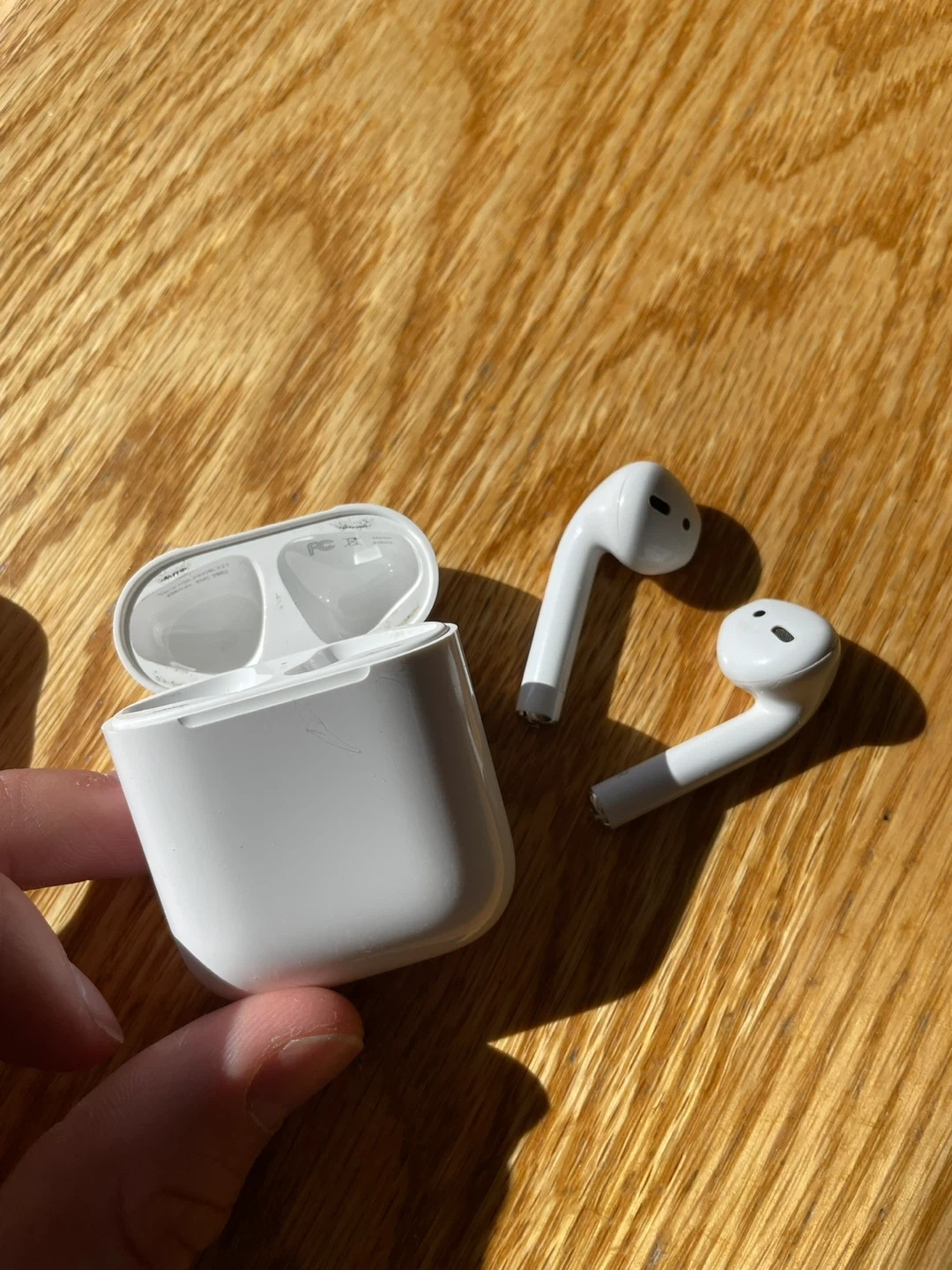 Selling my old AirPods since I upgraded, the right ear is slightly quieter than the left but you can change it in settings. Pretty beat up but hey the job done.
