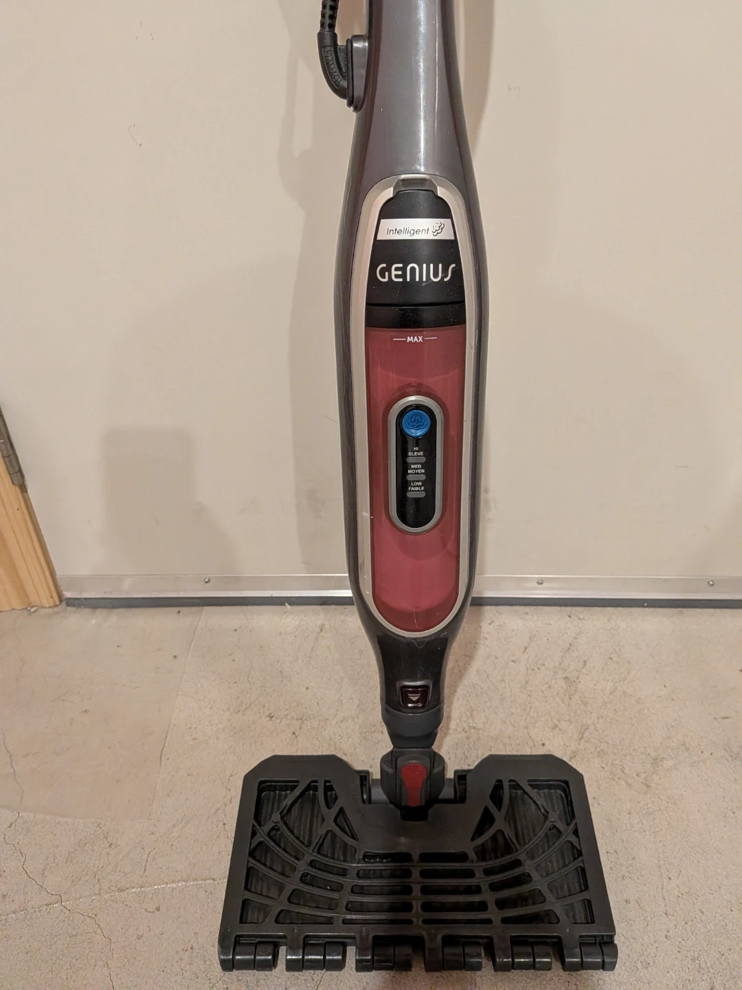 Shark Genius steam mop with intelligent steam control. Features three steam settings: Hi, Med, and Low. Great for cleaning hard floors.
