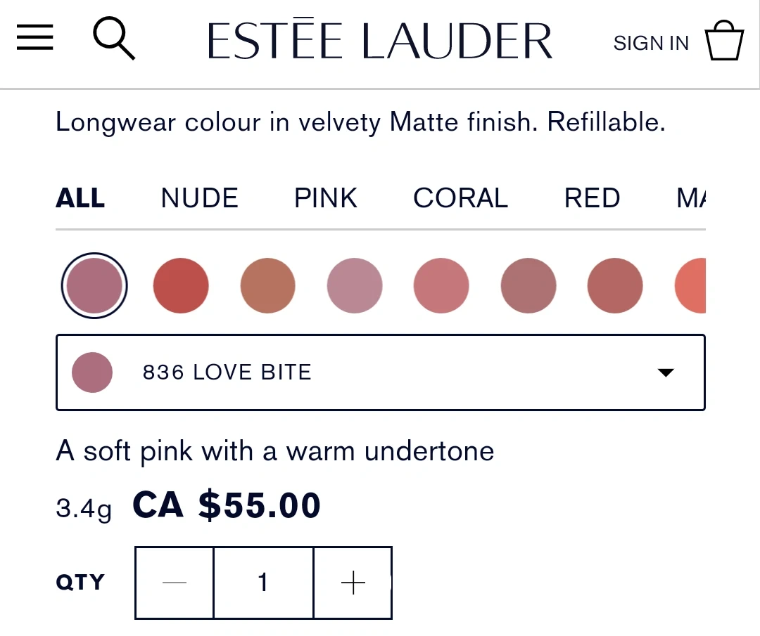 Longwear colour in velvety Matte finish. Refillable.
