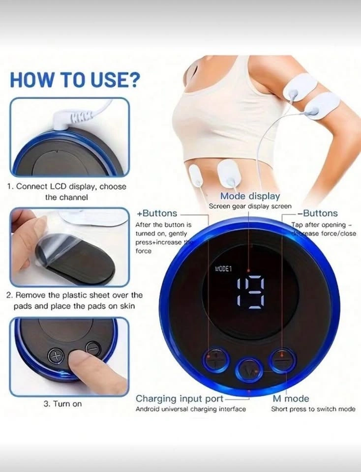 1 Set Portable Mini 8-Mode 19-Level Rechargeable Massage Machine, includes 1 Connector Clip + 1 Neck Massage Patch. Suitable for shoulder, neck, and leg massage for men and women. Great for holiday gifts.