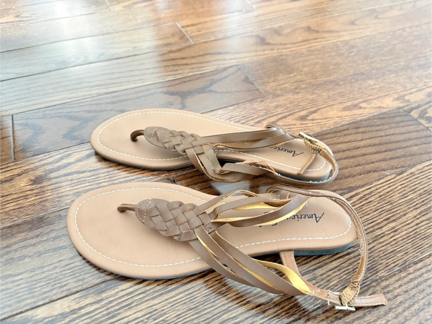 Comfortable brown woven strap sandals from American Eagle. These flat sandals feature a classic thong strap with braided detailing. Size is 8.
