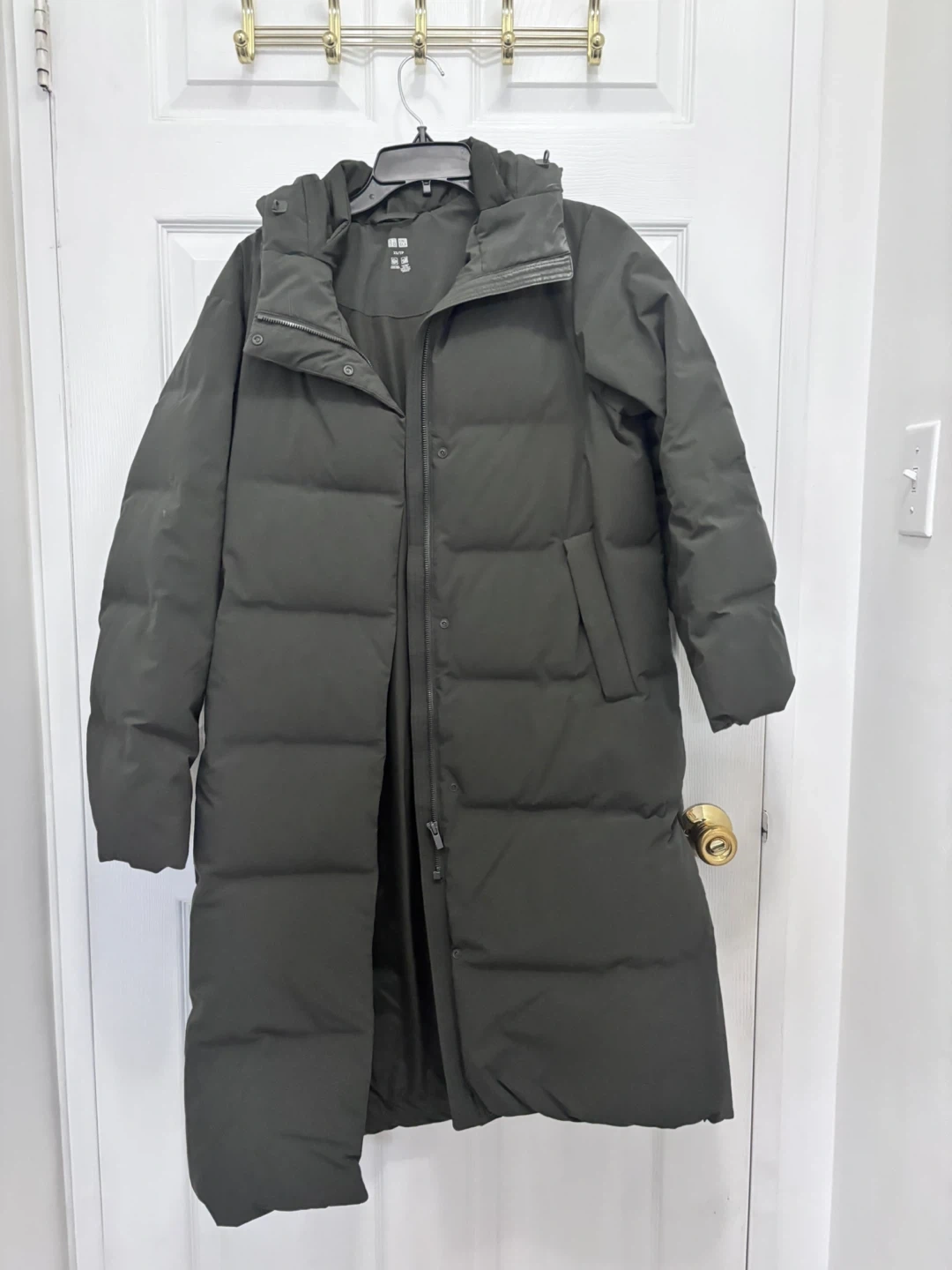 Selling a Uniqlo down coat in size XS. It's a lovely olive green colour and in great condition. This coat is windproof and has durable water repellency. Bought this last Feb only.