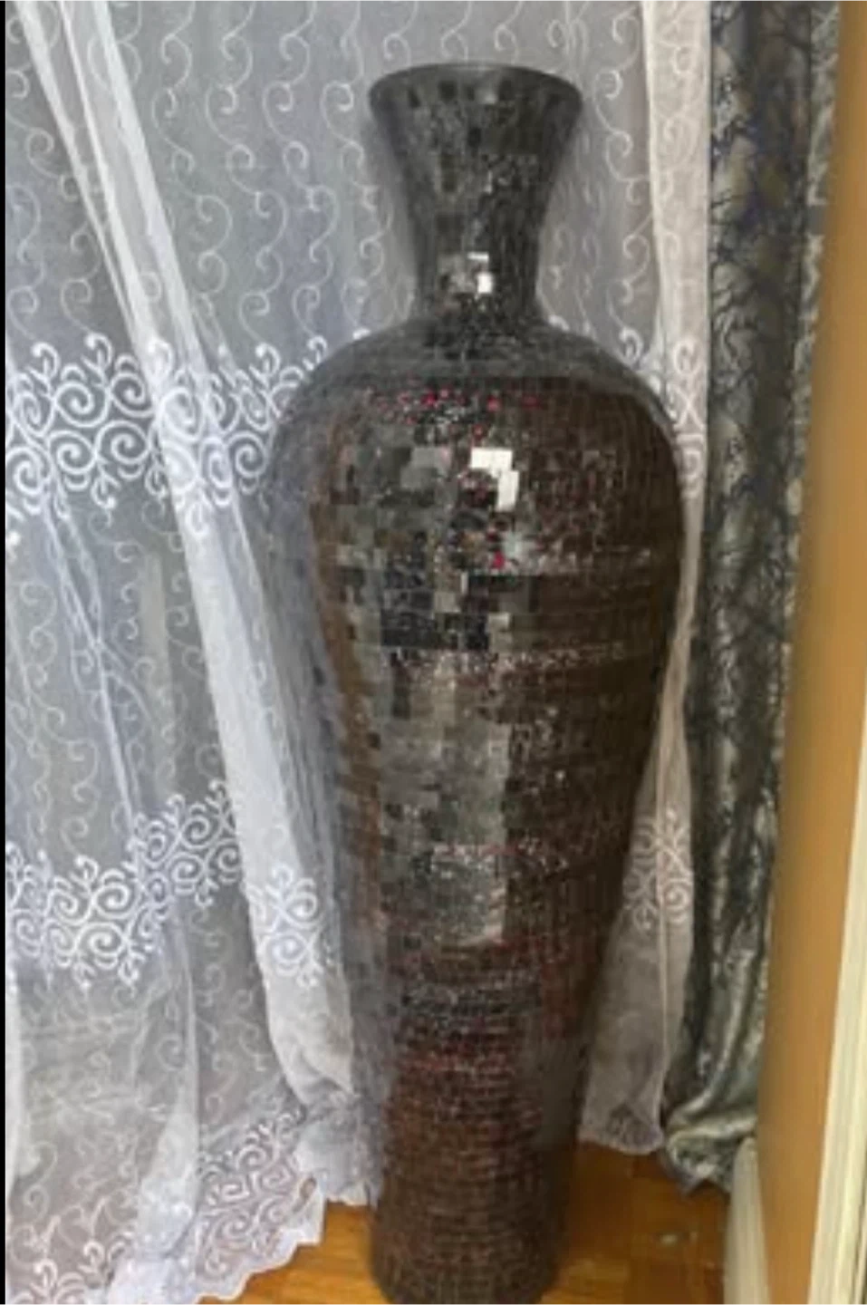 Selling a striking mosaic vase in black! It would be a great statement piece for any room. It's in great condition and ready to add some sparkle to your space