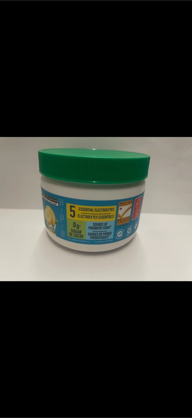 Organika Electrolytes powder in a lemon flavour. It's a source of 5 essential electrolytes and prebiotic fibre. This container has 215g of product.