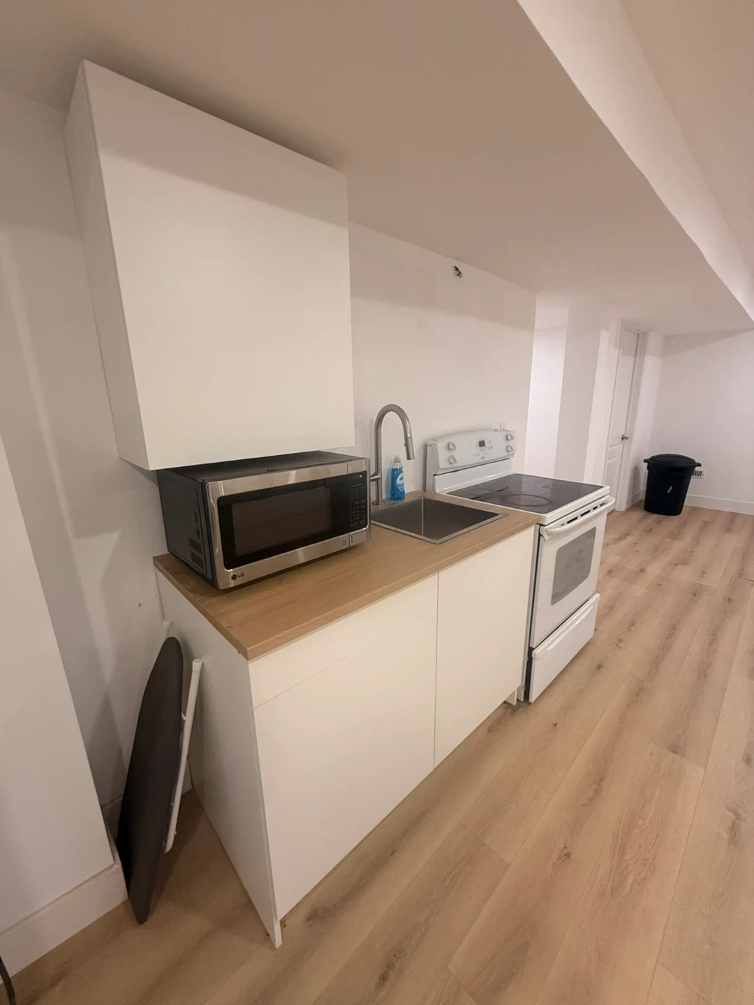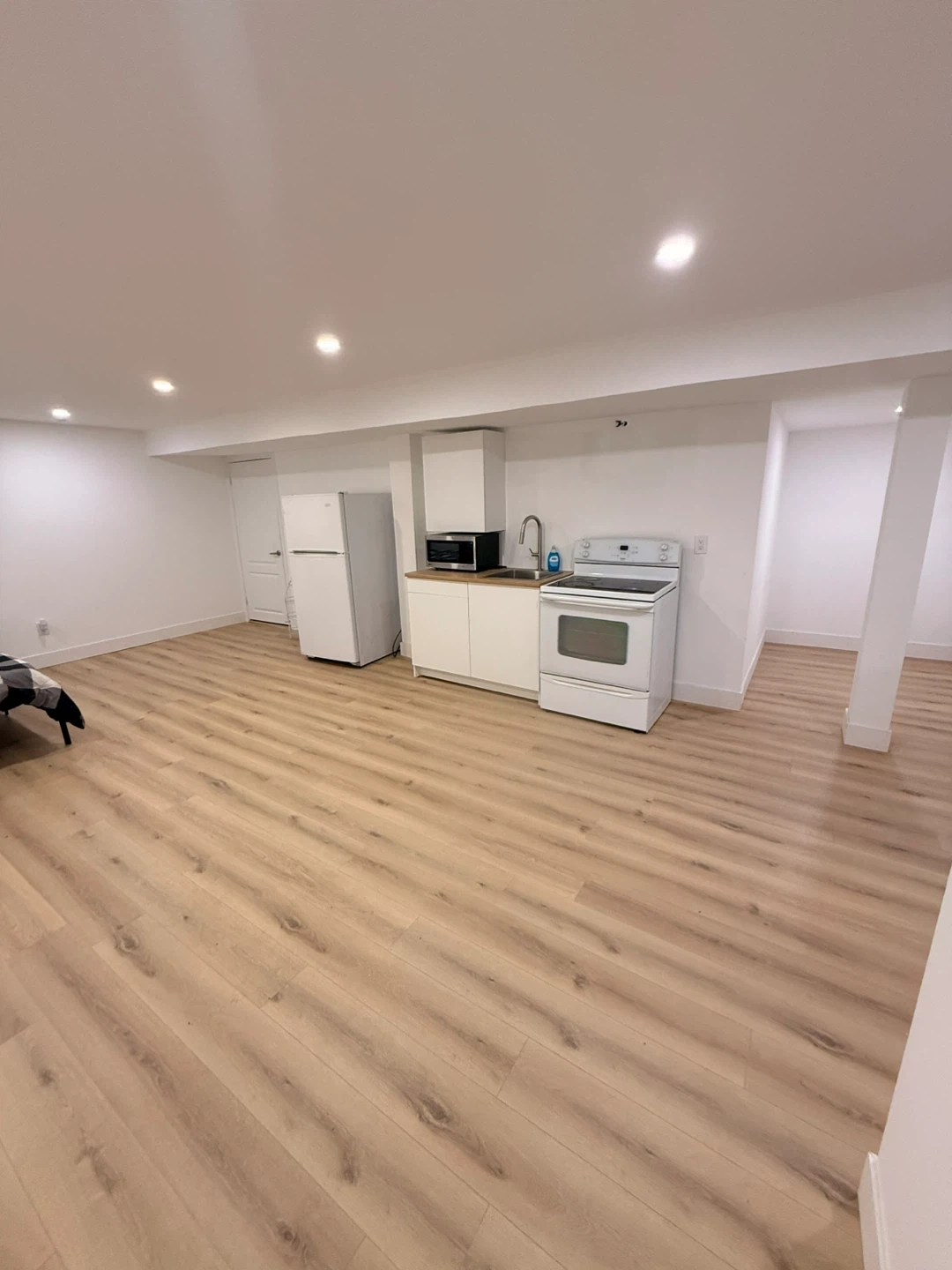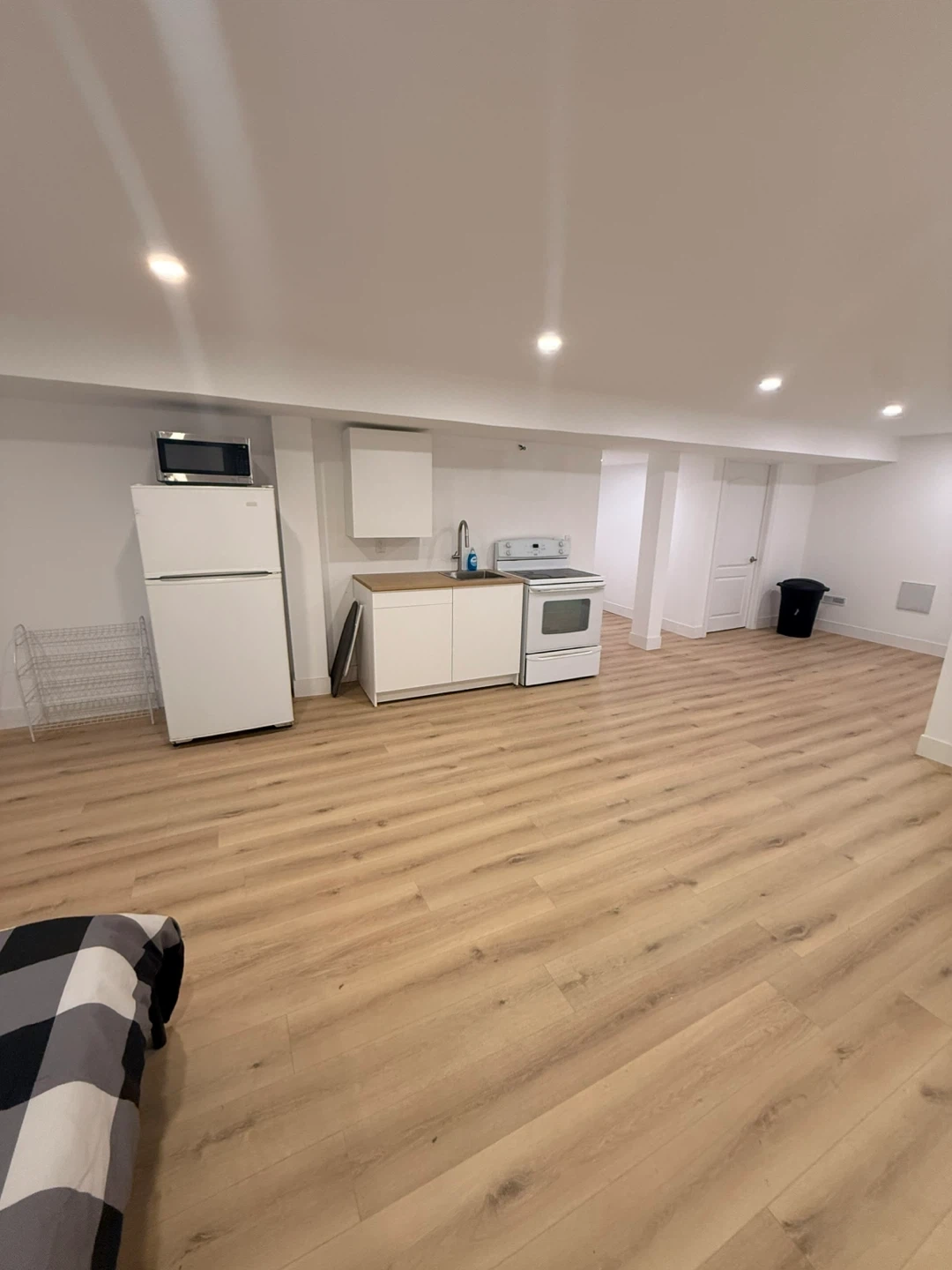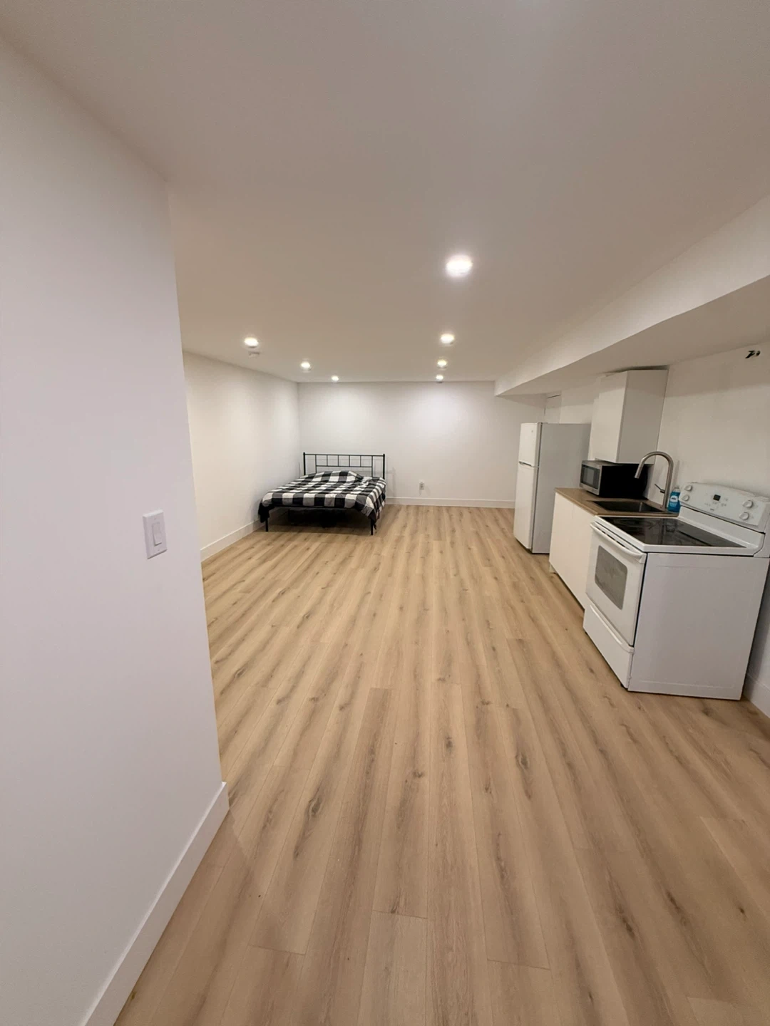 Private Spacious 1 bed room, 1 bathroom basement available, featuring a full-sized stove and refrigerator, and kitchen. The unit includes a modern bathroom with a walk-in shower. Perfect for single occupancy or a couple seeking a comfortable living space. No pets, No Children, 4 months pay stubs proof of income, 2 pieces of government issued ID and references.